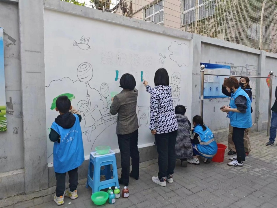 成仪路社区在厂西平房举行了一场以“变废为宝 共绘美好”为主题的墙绘活动,活动邀请了成寿寺街道办事处副主任张星星、社区办工作人员、辖区单位石榴庄派出所民警、党员志愿者及未成年人共同参与。旨在通过艺术的形式,提高居民对垃圾分类的认识和重视。