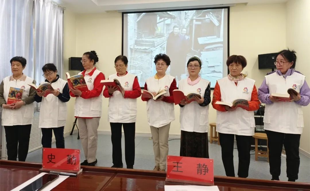 窦志联的老年志愿者们朗读了《习近平走进百姓家》。饱含深情的诵读,再现了“人民领袖爱人民,人民领袖人民爱”的感人场景,习近平总书记“我将无我,不负人民”的人民情怀、家国情怀深深感染了全体巾帼志愿者的内心。