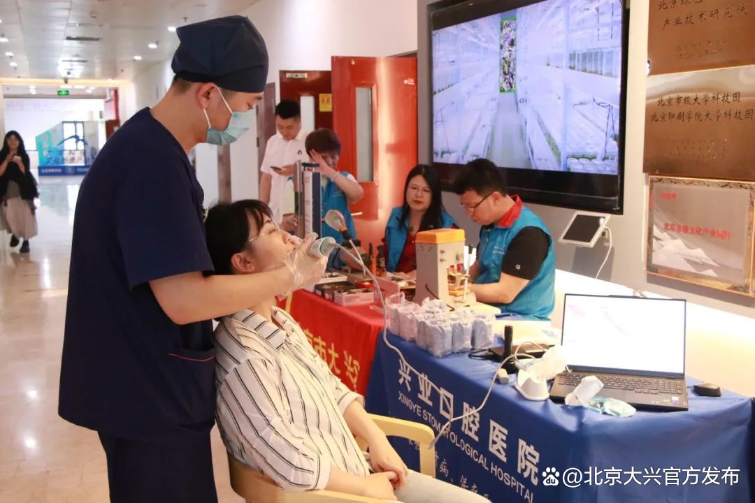 另一侧的口腔检测摊位,工作人员经过扫描检测后,根据口腔内部图像后,有针对性地为职工提供口腔护理建议。