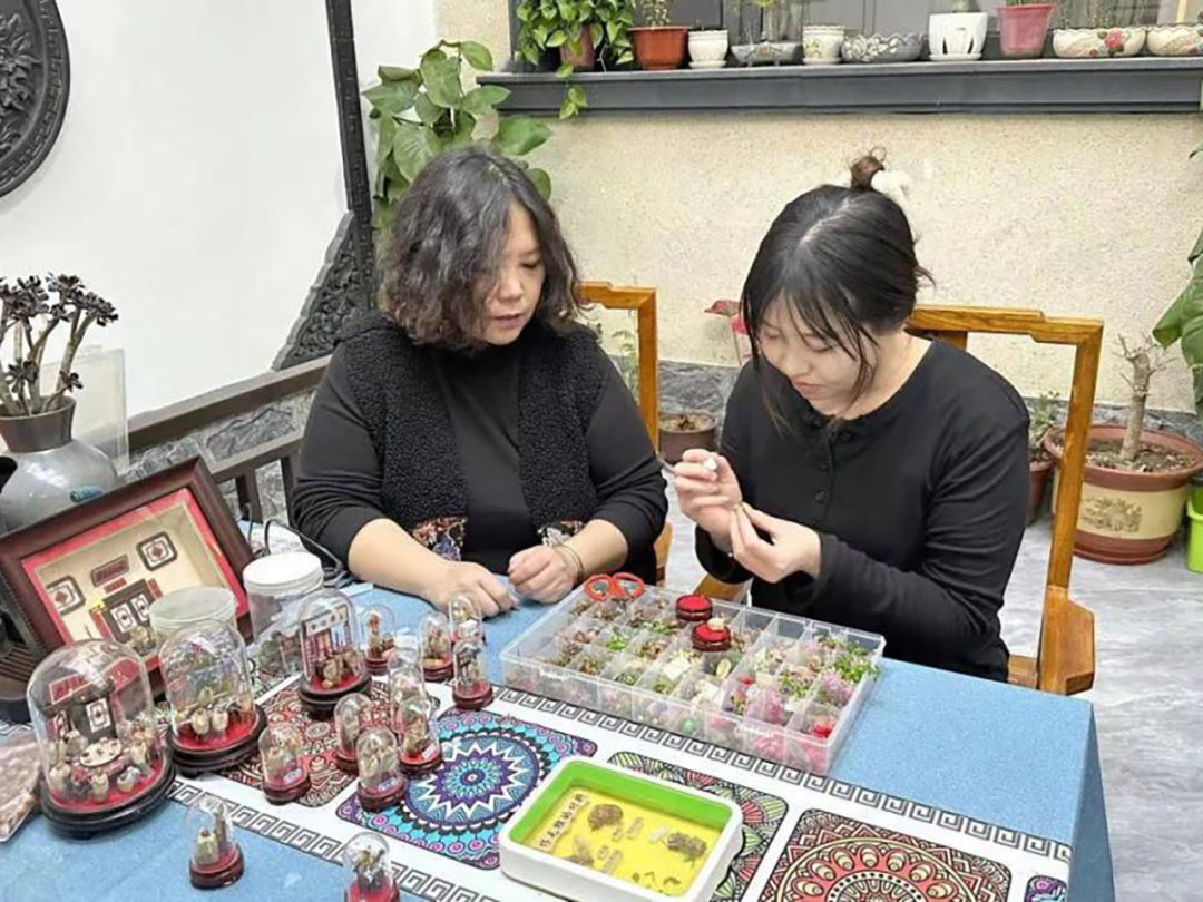 林凤梅在深耕非遗文化传承及发展的道路上,突破开发利用的瓶颈,创作押花香筒《松鼠吉祥图》、老北京毛猴《家和万事兴》、掐丝粉彩葫芦《富贵牡丹》,以及烙画与彩绘相结合的葫芦作品《顺心顺意》等一系列艺术品,先后获得北京工艺美术行业协会铜奖、北京旅游商品设计大赛优秀奖等荣誉,为村庄文化传承和发展注入了新活力。