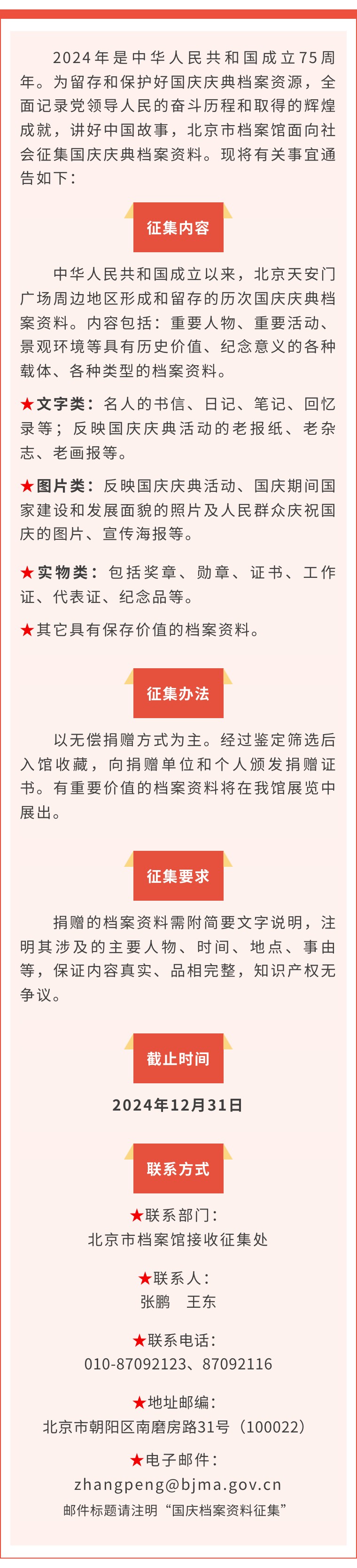 北京市档案馆关于面向社会征集国庆庆典档案资料的通告