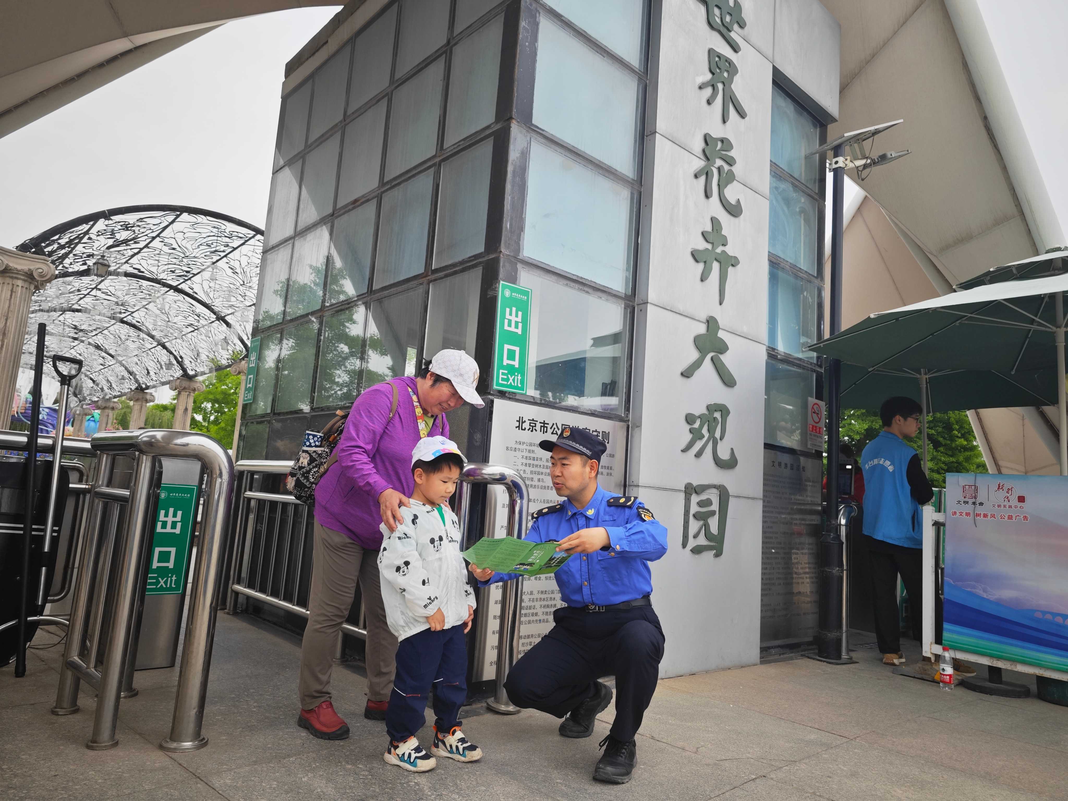 随着“五一”长假来临,游园人数激增,为给广大游客营造整洁有序的游园环境秩序,丰台区城管执法局结合辖区公园客流量和环境秩序情况,联合园林绿化、公园管理机构等职能部门,调度属地综合行政执法队,开展文明游园护航行动,通过“普法+巡查”的模式对游客的不文明行为进行劝诫引导和宣传教育,进一步提升文明游园秩序。