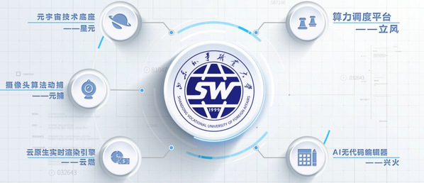 作为学校的重要科研机构,山东外事职业大学元宇宙研究院以元宇宙前沿技术开发与应用为核心,全面探索教学科研、人才培养和成果转化。先后以领先的容器虚拟化及端云一体化技术为依托,成功开发出“星元”元宇宙技术底座,并利用AI算法开发的基于普通摄像头的智能动捕面捕产品“元捕”。同时推出以区块链为底层,支持多端登录及多硬件适配的元宇宙产品“兴元世界”。并通过训练超级中枢(超级个体)调度管理各类AI工具,推出AI多模态无代码编辑引擎“立风”,为元宇宙空间创作提供开发与编辑工具。