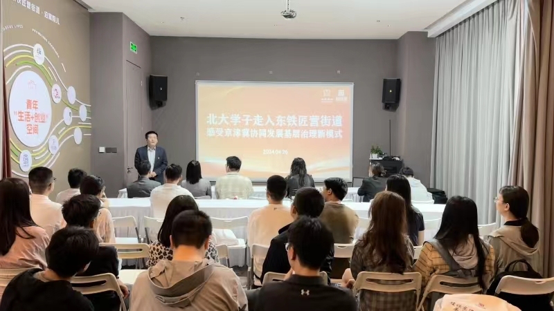 4月26日,北京大学政府管理学院2021级本博联合党支部、2021级本科生团支部、北京大学经济学院金融学系博士生党支部40名师生共同走进丰台区东铁匠营街道实地参观、研讨,切实感受东铁匠营京津冀协同发展基层治理新模式。东铁匠营街道相关负责人陪同参观并座谈。