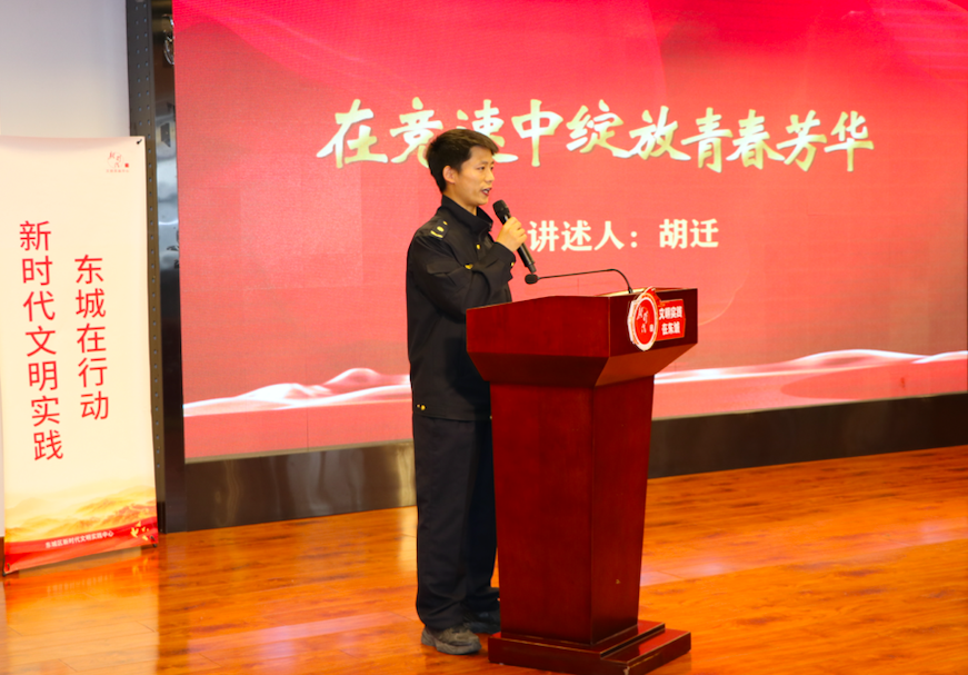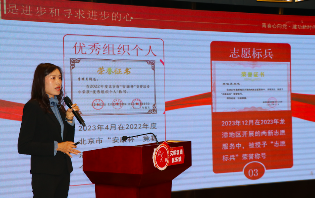 北京京城卫士保安服务有限公司的财务总监、东城区平安消防职业技能培训学校校长李佳熹围绕全力做实“劲”字文章青助“活力龙潭”开展主题宣讲