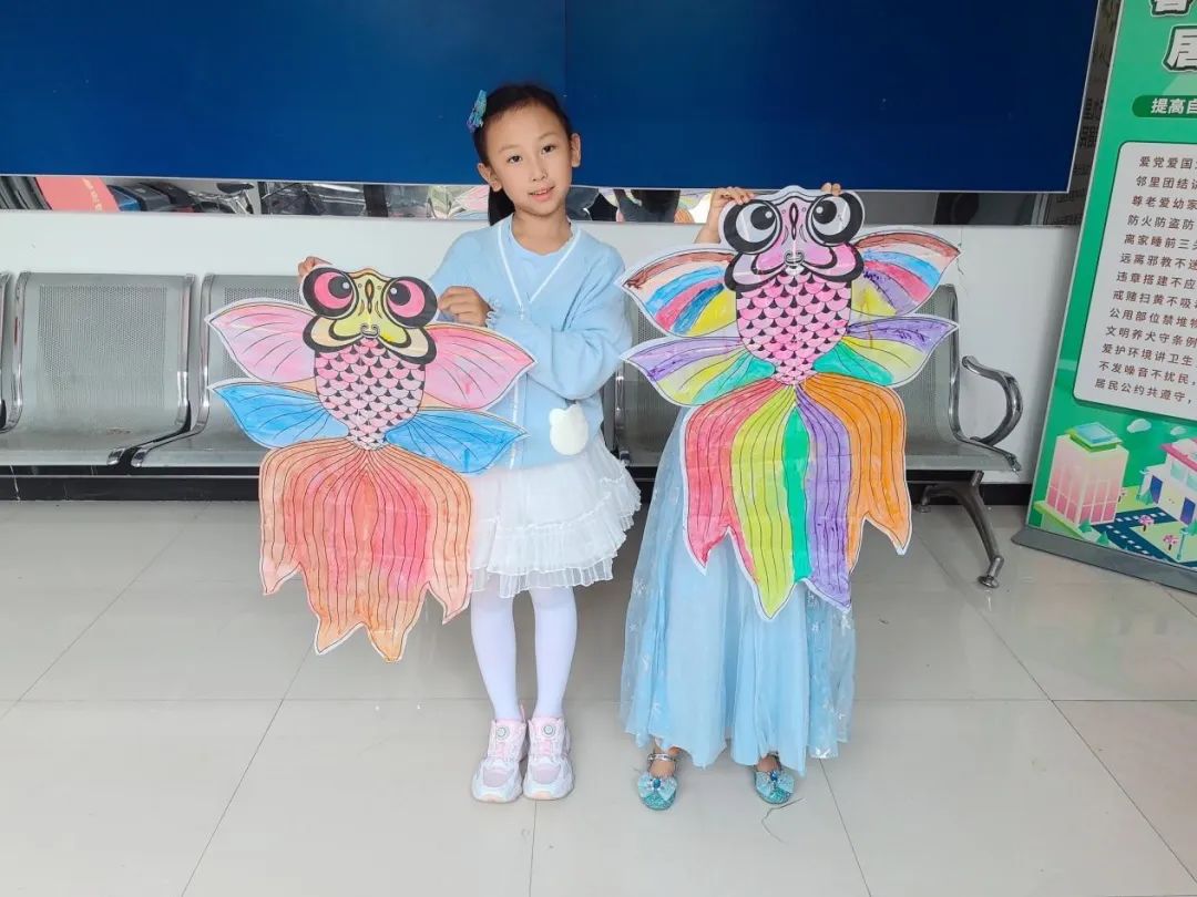 在老师的讲解中,大家穿针引线,将竹篾缝住加固。随后,大家手拿画笔,小心勾边,细致填充,亲手绘制五彩缤纷的金鱼风筝。活动结束,大家合影留念,记录下美好的瞬间,用五颜六色的风筝点亮春天的色彩。