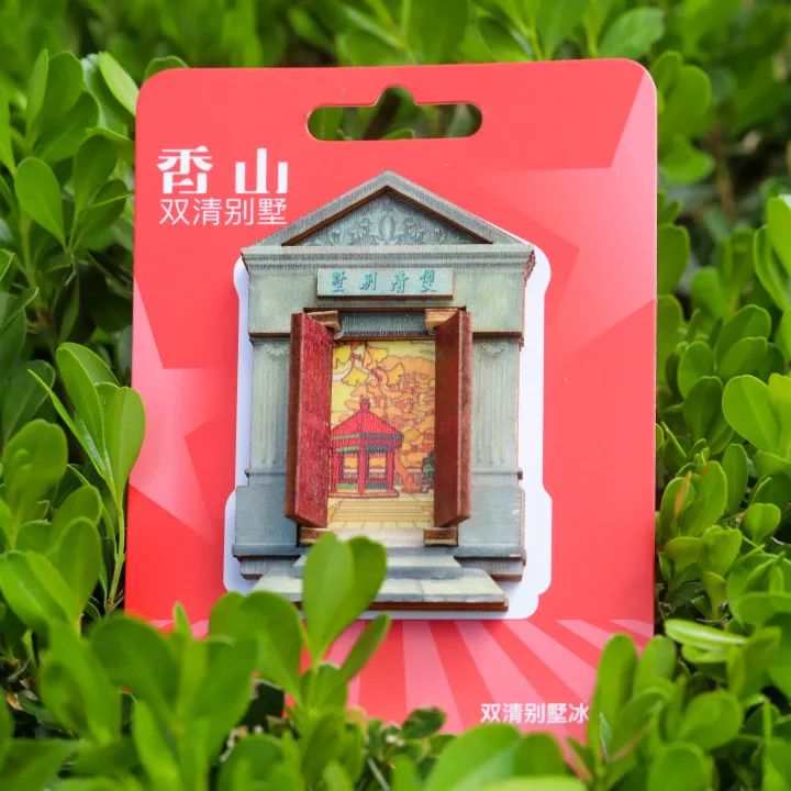 而双清别墅木质款冰箱贴更是惊艳亮相,以精细的工艺复刻了双清别墅的红色大门,设计巧妙。大门闭合时,展现的是双清别墅端庄的外观,打开木门,带来别样的风景。