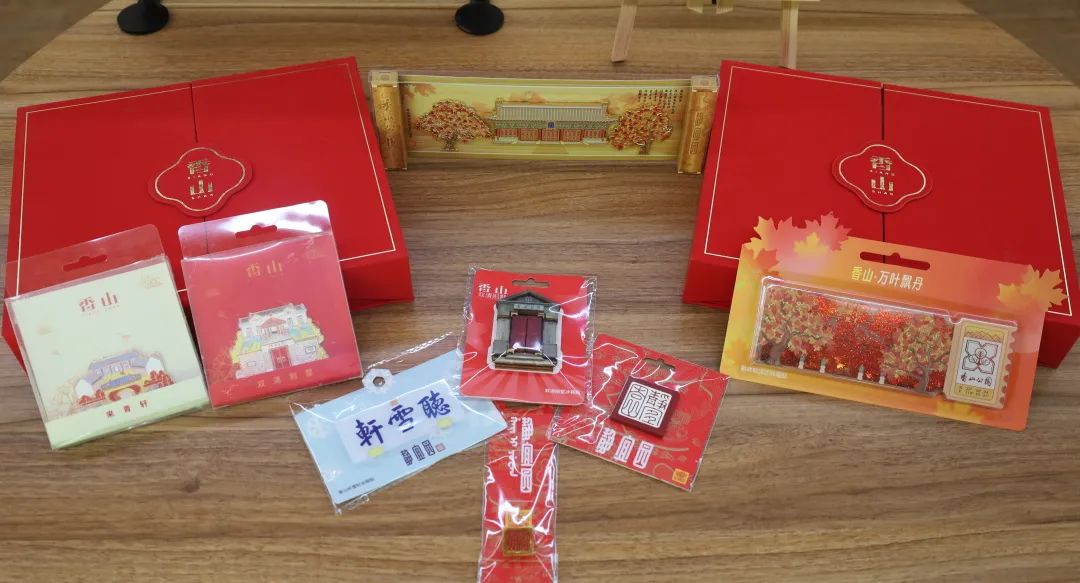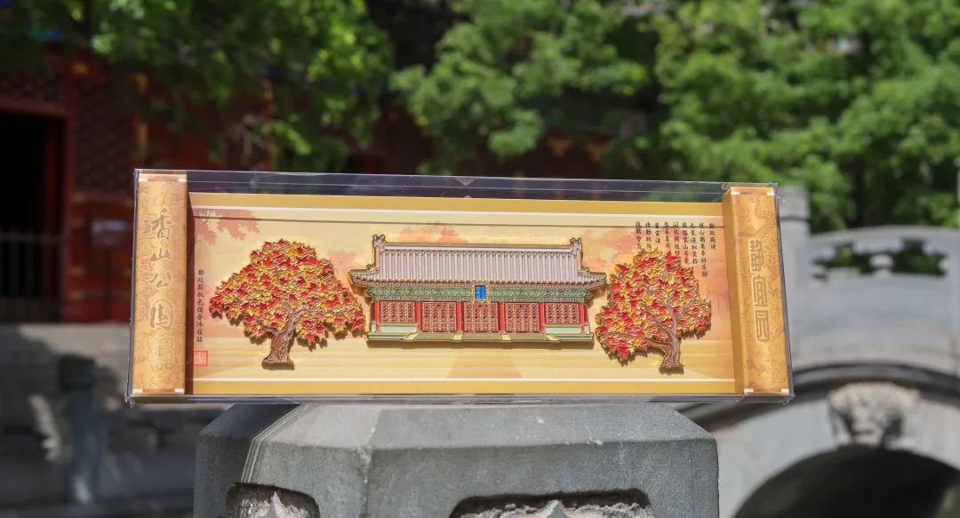 勤政殿秋色组合冰箱贴,首次推出组合型冰箱贴,由勤政殿建筑和殿前两株枫树组合而成。勤政殿是香山皇家园林建筑的典型代表,为“静宜园二十八景”之首,殿前两株高大的元宝枫更被称为香山红叶的消息树,每年秋季都是游客朋友们打卡拍照最火爆的景点。这组冰箱贴将二者结合起来,三个冰箱贴既可以单独摆放,也可以组合摆放。而包装更是别具用心,以卷轴的形式将勤政殿诗蕴含其中,让大家购买的不仅是一份文创礼物,更是一份文化品位。