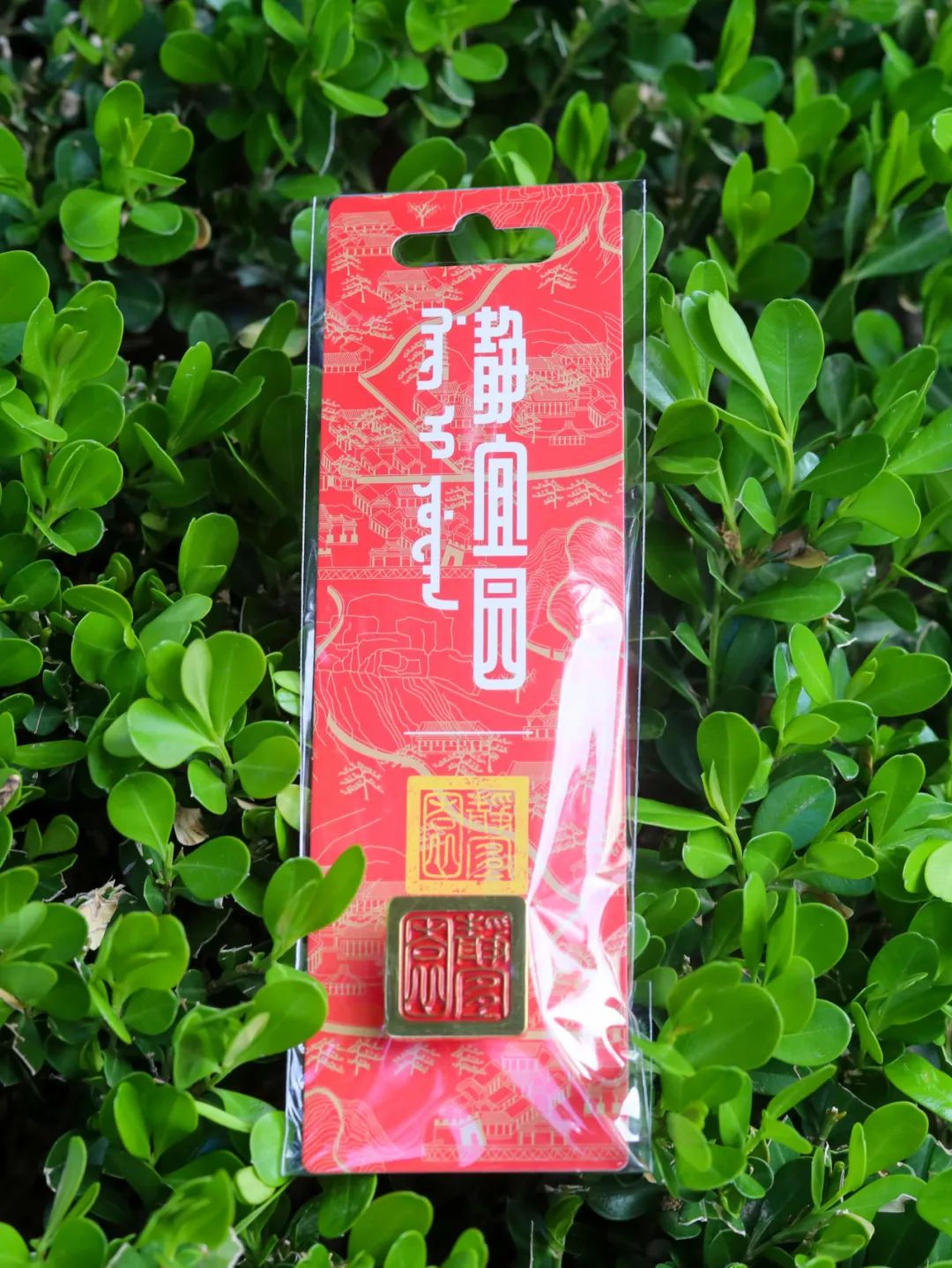 静宜园冰箱贴、徽章设计灵感来源于印章,将“静宜园”三字制作为白底红字和红底金字两款“印章”,庄重典雅、制作精良,处处展现着中华传统文化底蕴。