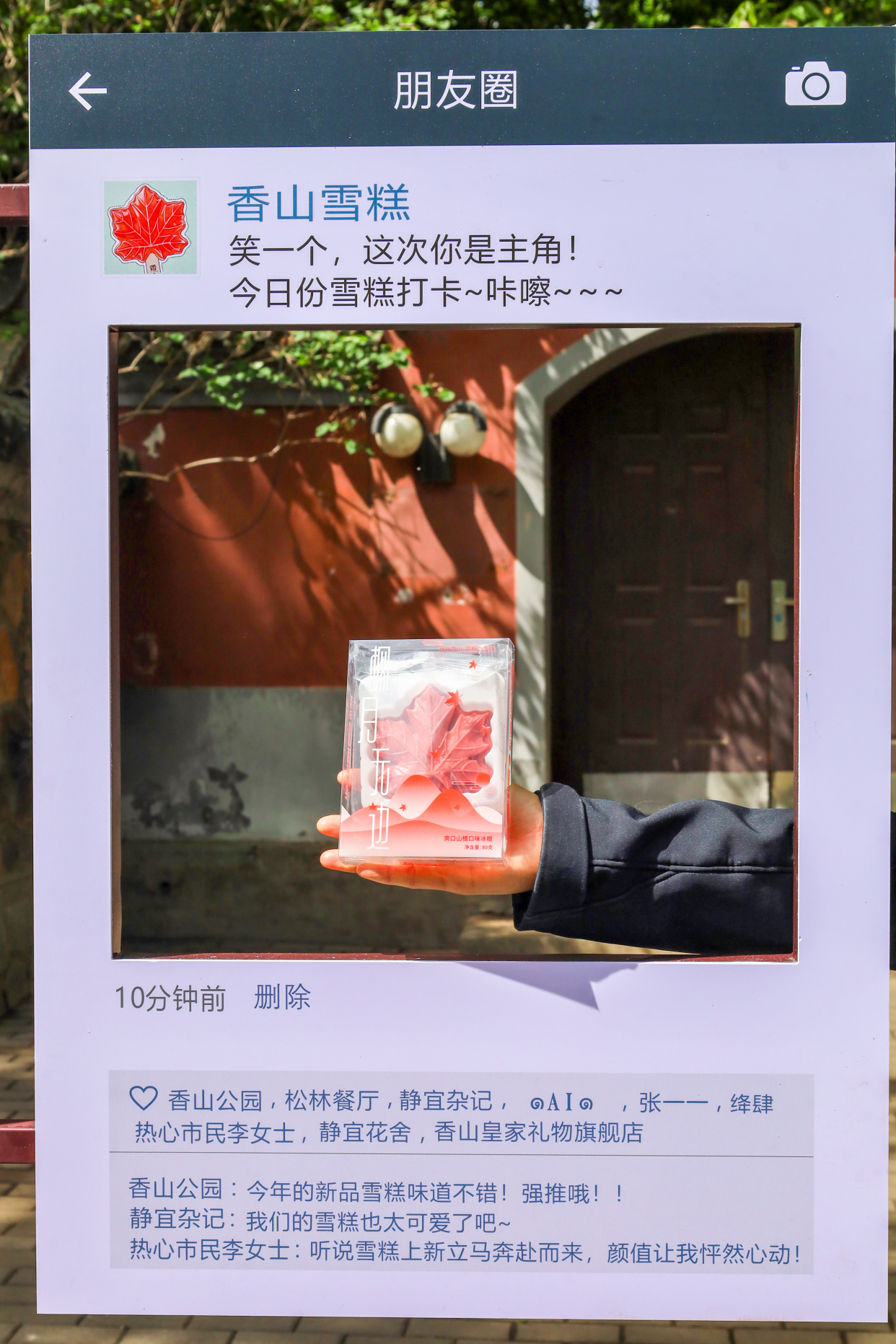 备受大家欢迎的香山文创销售排行榜榜首产品——香山文创雪糕在“五一”假期将迎来第三代产品,在保留原有黄栌造型雪糕的基础上,新增红枫造型,绿豆味道雪糕更换为香草味道雪糕,此外,我们年轻的文创研发团队成员还特别设计两处文创雪糕打卡点,有趣的标语、可爱的图案,为大家带来新的视觉味觉体验。