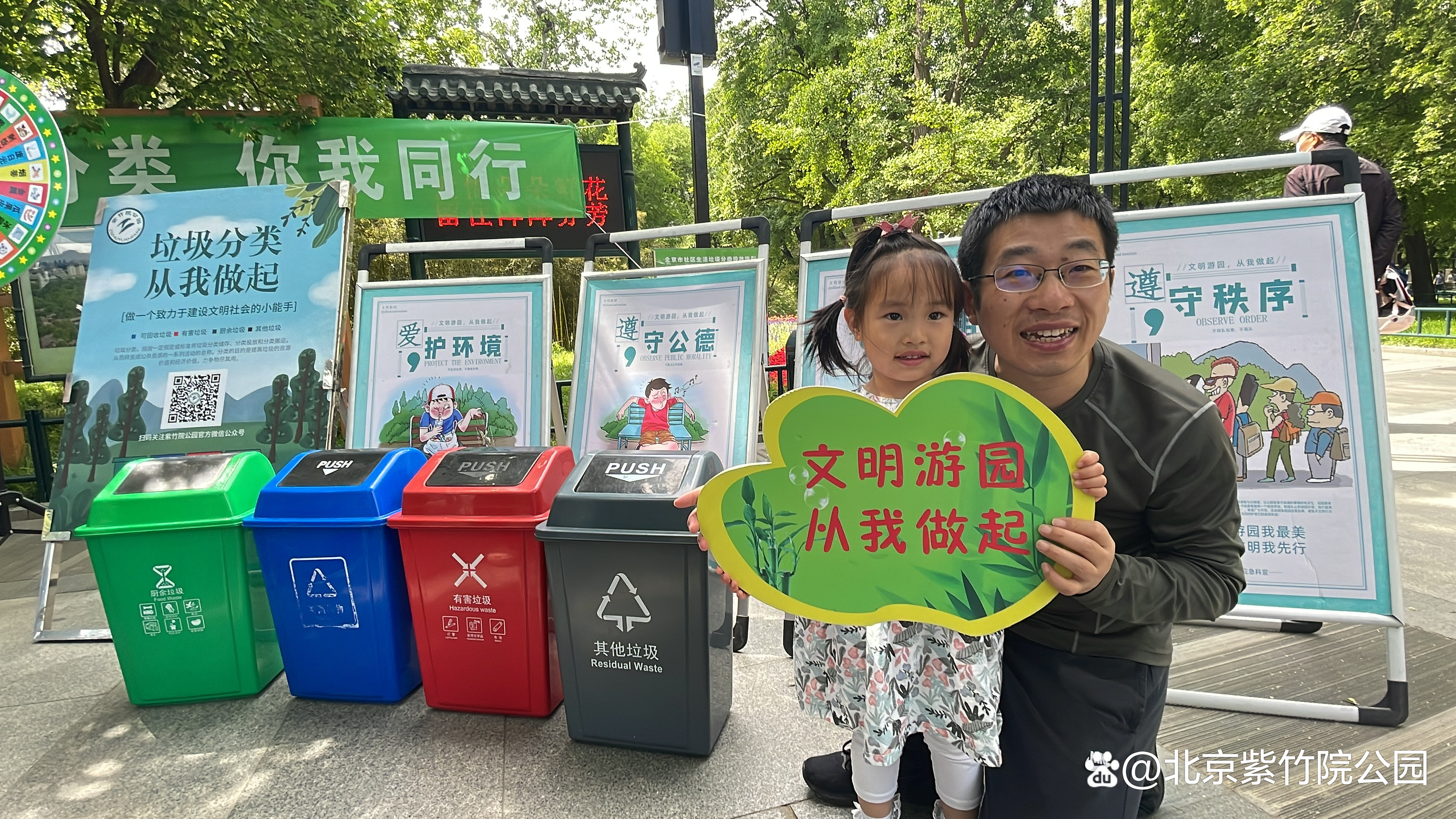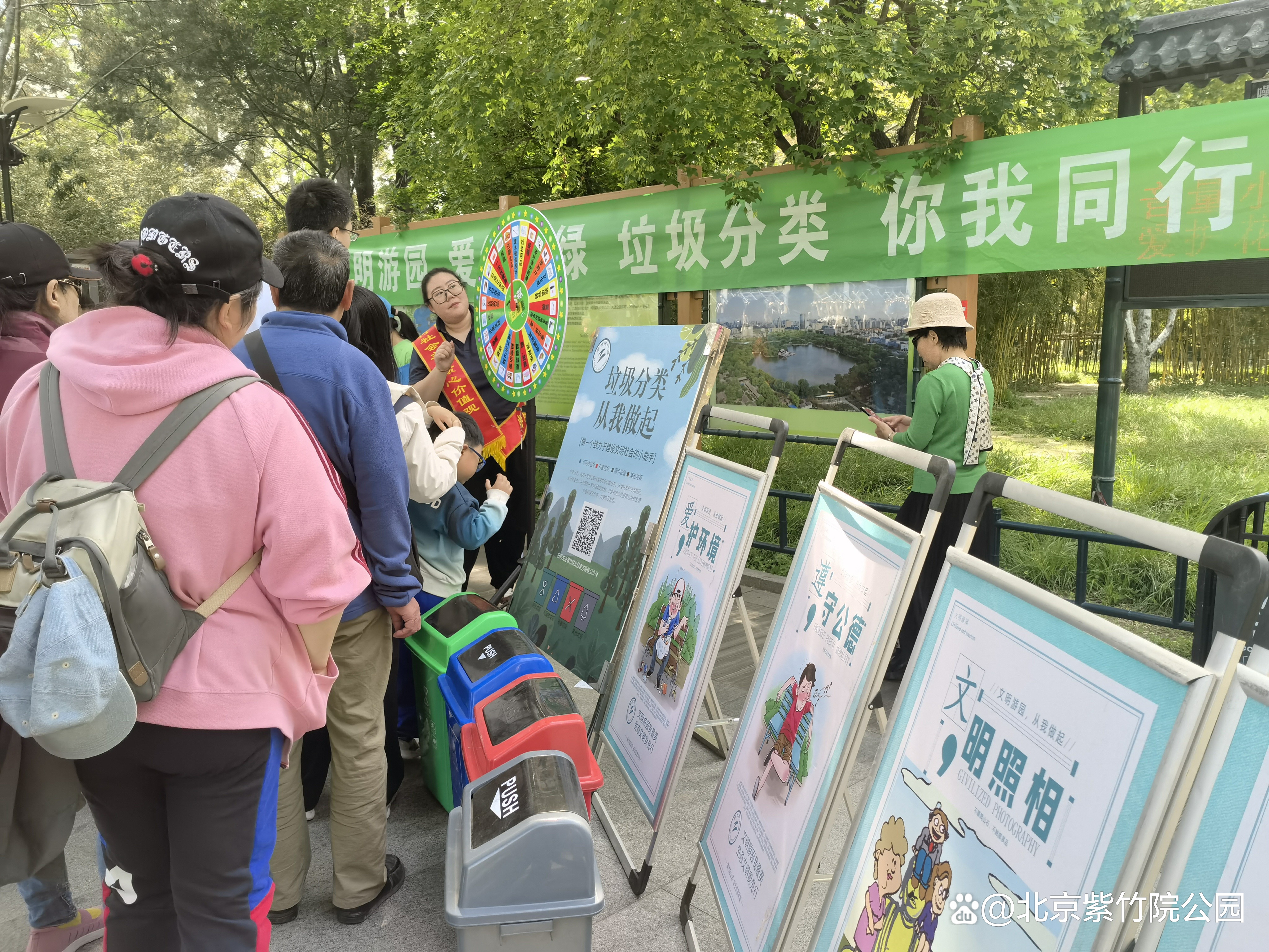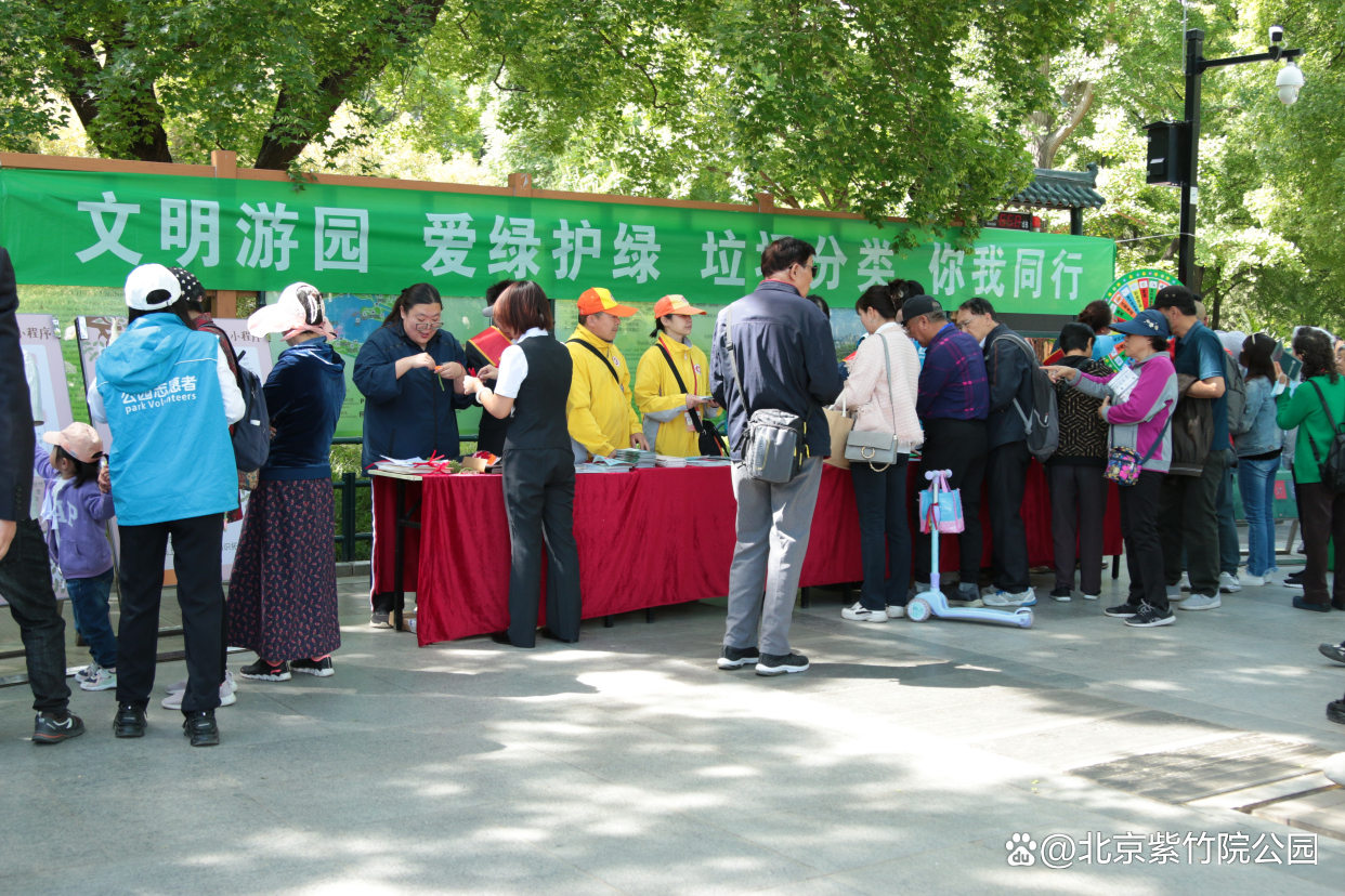 5月1日劳动节假期第一天,紫竹院公园开展“文明游园 爱绿护绿 垃圾分类 你我同行”文明游园宣传活动,鼓励市民游客深入了解垃圾分类常识,践行文明游园理念。