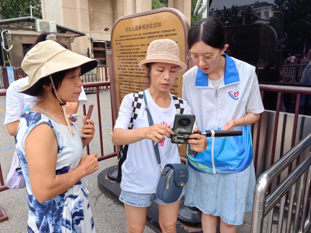在天坛中轴线志愿服务实践站,身穿“蓝马甲”的中轴线志愿者张小琴正忙着为游客提供路线指引,答疑解惑。作为有着7年志愿服务经验的“老志愿者”,她说:“我们志愿者要做到眼里有活儿,看见有疑惑、需要帮助的游客,不等他们张口,自己主动上前帮个忙,这就是志愿服务的专业精神。”