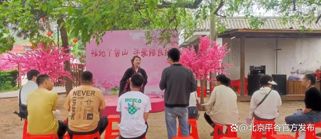 初夏时节,娇艳的朵朵桃花让整个活动充满了浪漫和温馨。“王婆”热情地为现场单身男女牵线搭桥,与大家共赴这一场浪漫之约。在“王婆”的引导下,嘉宾们纷纷上台进行自我介绍,与自己的心动对象进行互动和大胆表白。成功配对的嘉宾不仅可以共同登丫髻山祈福。还能收到丫髻山送出的红绳礼物。