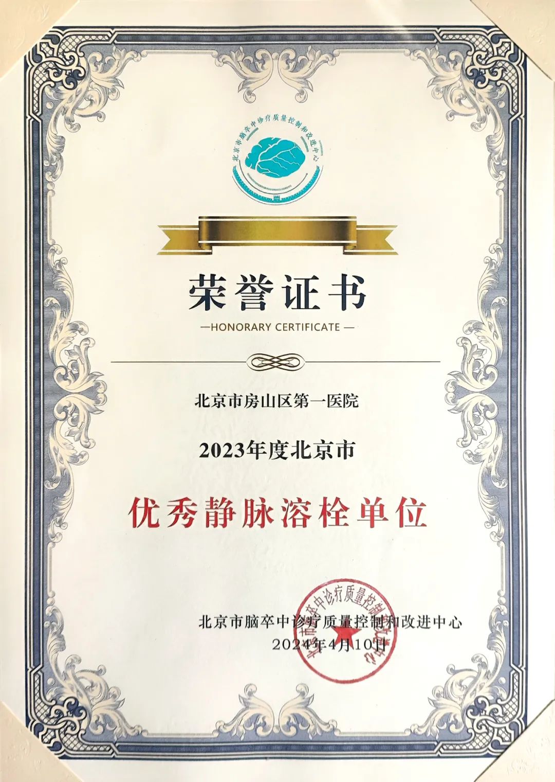 房山区第一医院自建立卒中中心以来,连续7年获得该项市级荣誉,每年静脉溶栓及取栓数量均位居北京市前列。