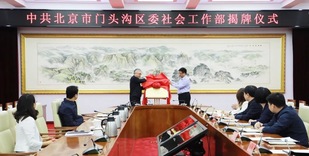 5月6日,中共北京市门头沟区委社会工作部揭牌成立。区委书记喻华锋,区委副书记、政法委书记王建华出席仪式。