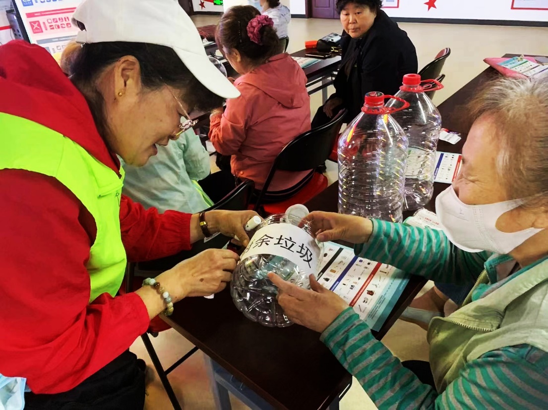 活动现场,宣传员们倡导大家从点滴做起,争做垃圾分类的参与者和践行者。模拟投放环节中,大家按照宣传员们讲解的知识,进行了实践,更牢固的掌握了垃圾分类技巧。之后在“变废为宝”的环节中,宣传员们带领大家,利用废弃饮料瓶制作了厨余垃圾桶,很快居民手边的废弃饮料瓶就变成了简易的垃圾桶。居民们纷纷表示:这种方法既简单又方便,不仅能减少垃圾的数量,还让我们发现了废弃物品的价值,实现资源再利用。