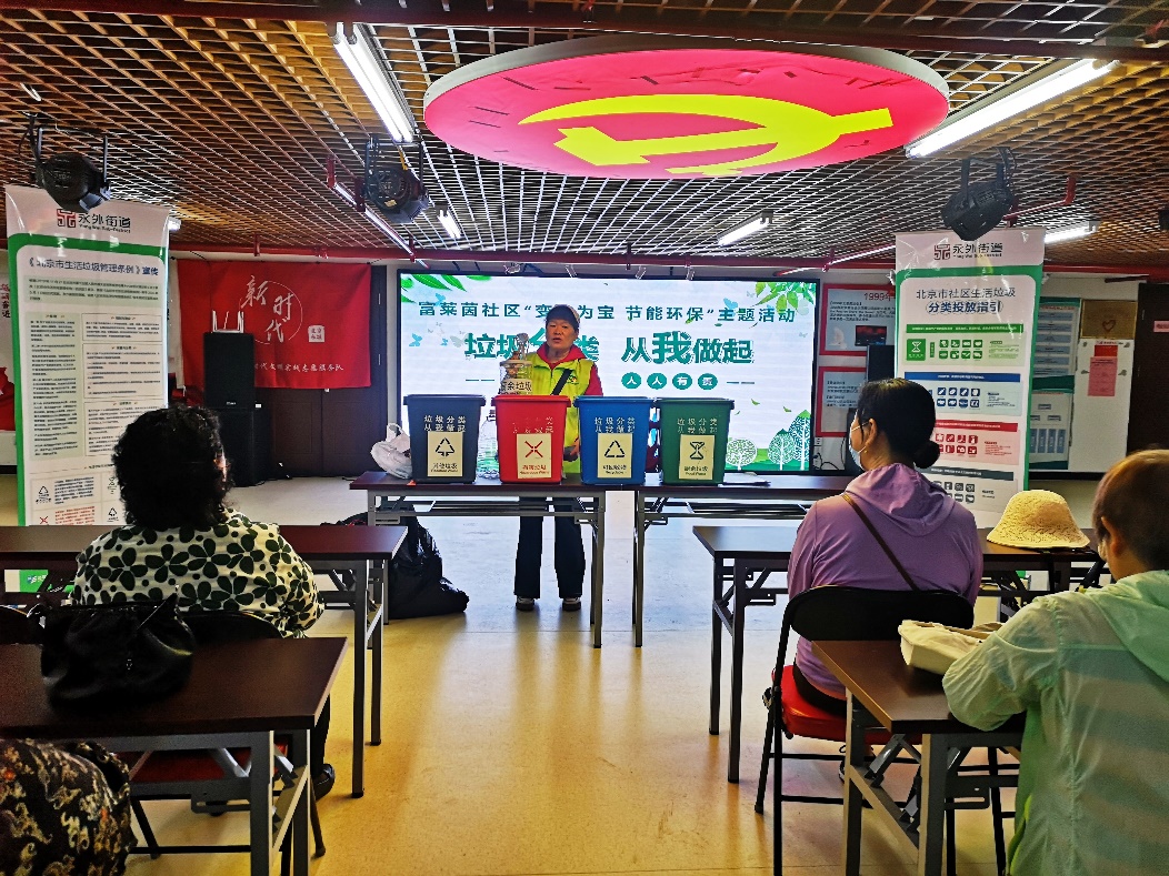 为增强居民环保节能意识,宣传垃圾分类知识,鼓励居民积极参与垃圾分类工作,5月7日,永外街道联合北京臻晟再生物资公司在富莱茵社区开展“变废为宝 节约能源”垃圾分类主题活动。