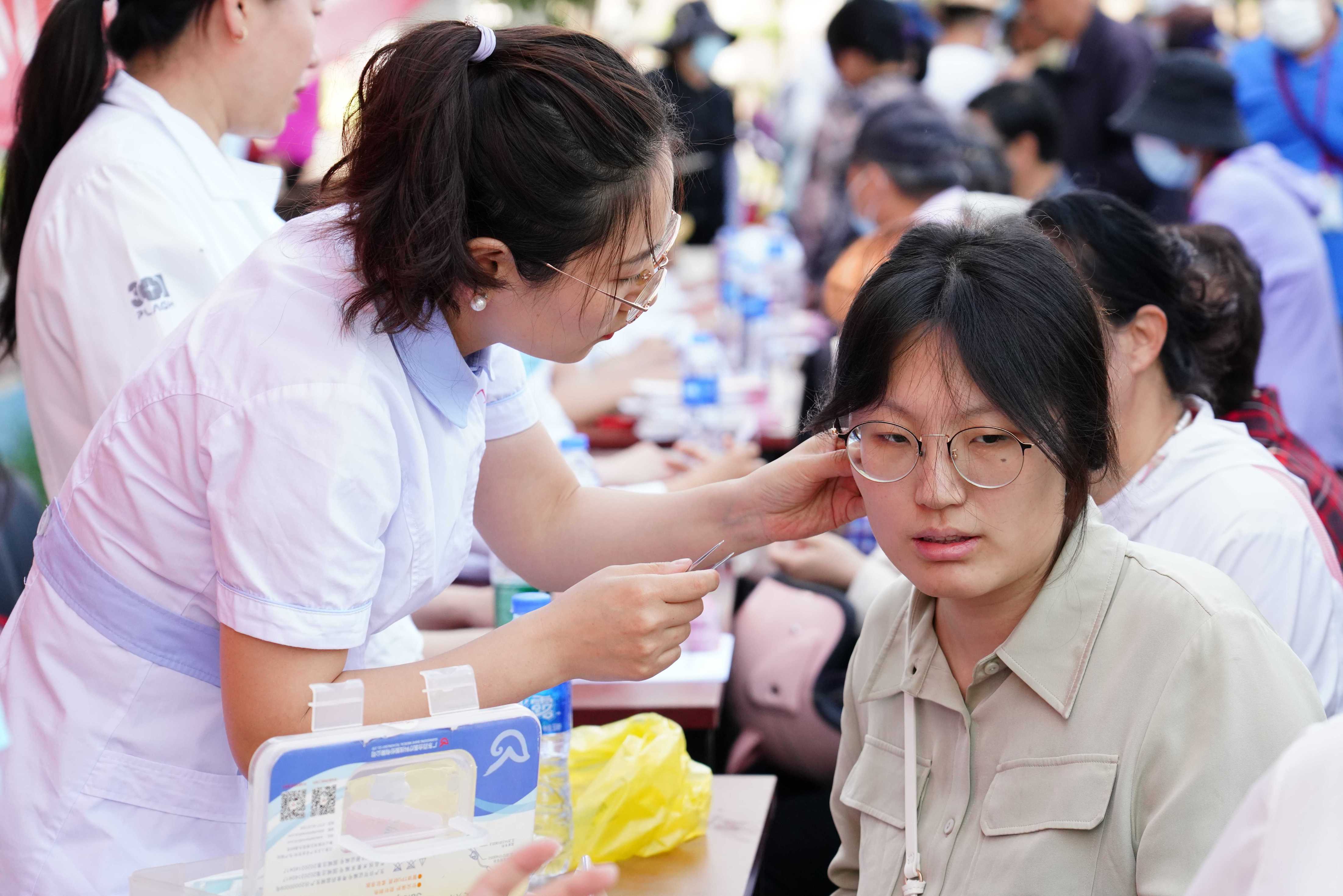 讲座结束后,工作人员带领居民走到青塔街心公园,开展专家义诊活动。“像伤口造口的护理、失禁性皮炎的护理是需要我们引起重视。”现场有多位医生为居民讲解了泌尿外科专科疾病,并针对居民的个人情况给出诊疗意见,也有居民带着近期的体检报告请医生帮忙解读并提出宝贵意见。除了义诊服务外,现场还有免费测血糖、血压服务,居民们有序排起了队伍等待检查,工作人员也将宣传手册分发给在场居民,引导大家正确认识疾病,提高健康意识,增强防治信心。