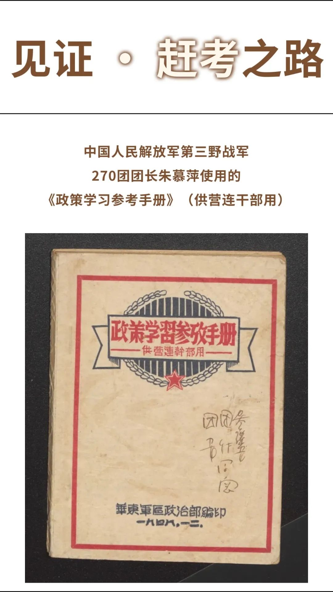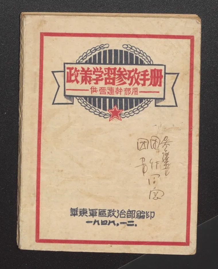 名称:中国人民解放军第三野战军270团团长朱慕萍使用的《政策学习参考手册》(供营连干部用)