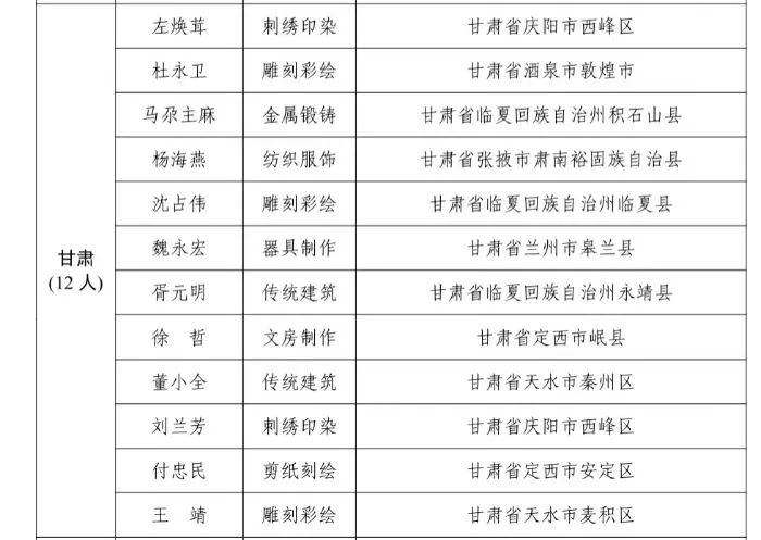 记者从第二届全国乡村振兴职业技能大赛中获悉,由农业农村部、教育部、工业和信息化部、人力资源和社会保障部、住房和城乡建设部、文化和旅游部、全国妇联等国家七部委确定的第一批乡村工匠名师已正式向全社会公布,在共计273人的首批乡村工匠名师中,甘肃省有12人上榜。