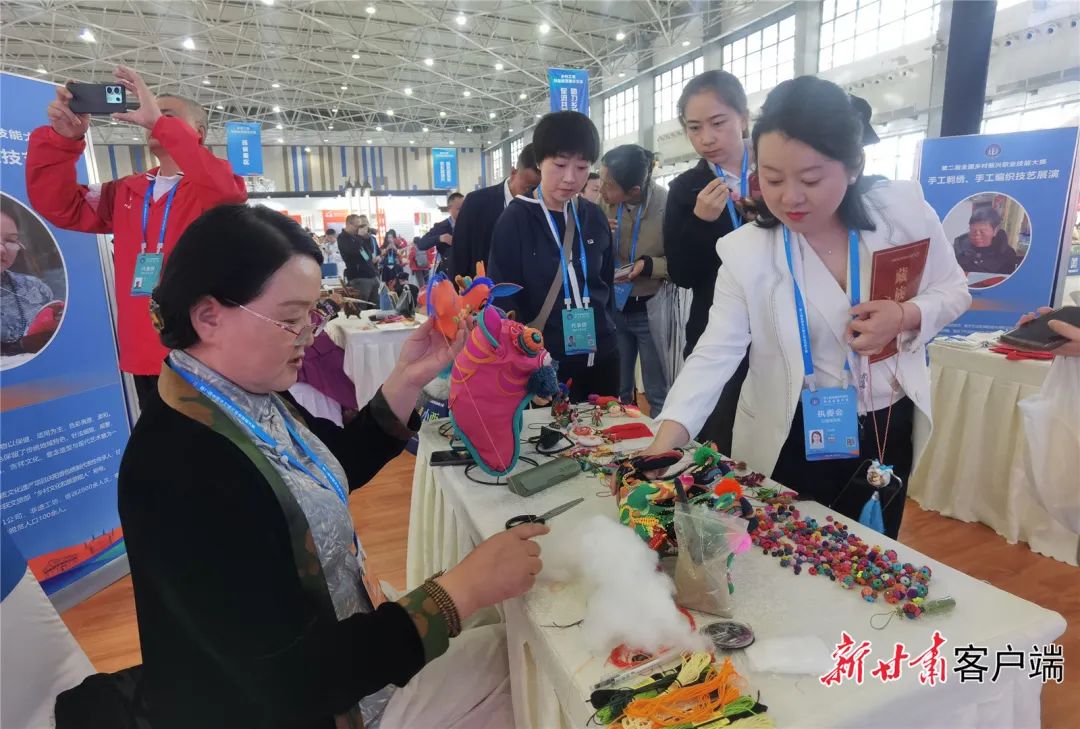 七部委确定第一批乡村工匠名师刘兰芳在第二届全国乡村振兴职业技能大赛中央展示区展示技艺。新甘肃·甘肃日报记者马国顺 摄