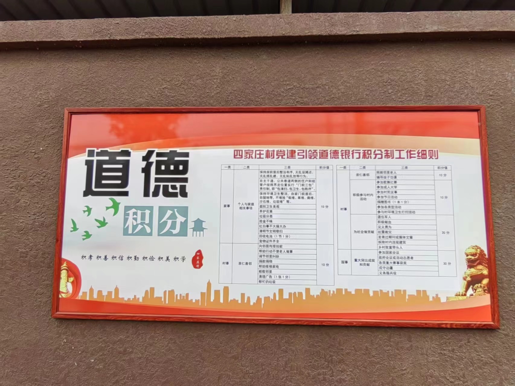 自阳坊镇四家庄村推行“道德银行”积分制度以来,受到了村民们的积极响应和广泛参与。积分内容涵盖了环境整洁、便民服务、爱亲友善、知晓政策、勤劳致富、移风易俗等多个方面,通过积分的形式,鼓励村民们积极参与乡村建设,树立文明新风。