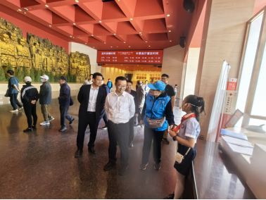 展厅内讲解不断,展厅外也不乏志愿者们的身影。他们积极投入到现场预约、安检、秩序维护和引导观众等服务中,耐心周到的服务得到观众连连称赞。