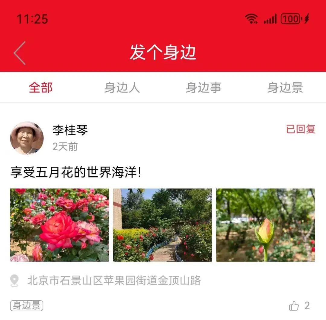 在【北京石景山APP】后台,也收到了市民分享家门口的小公园月季花开正时节。