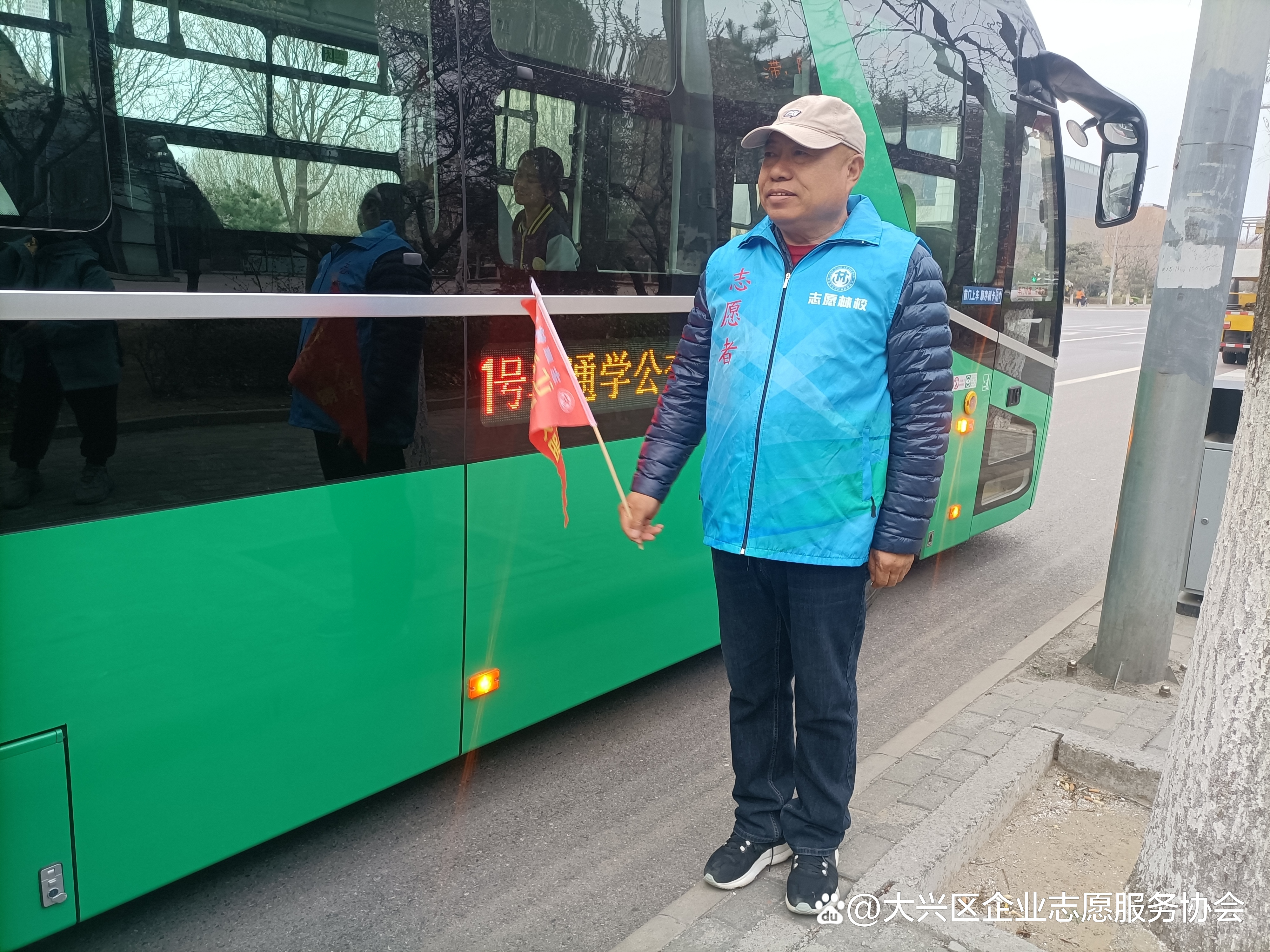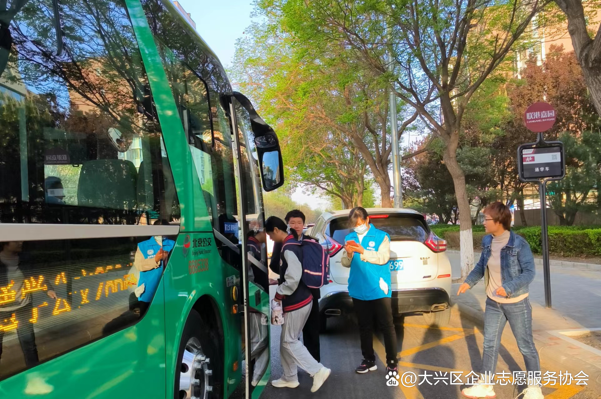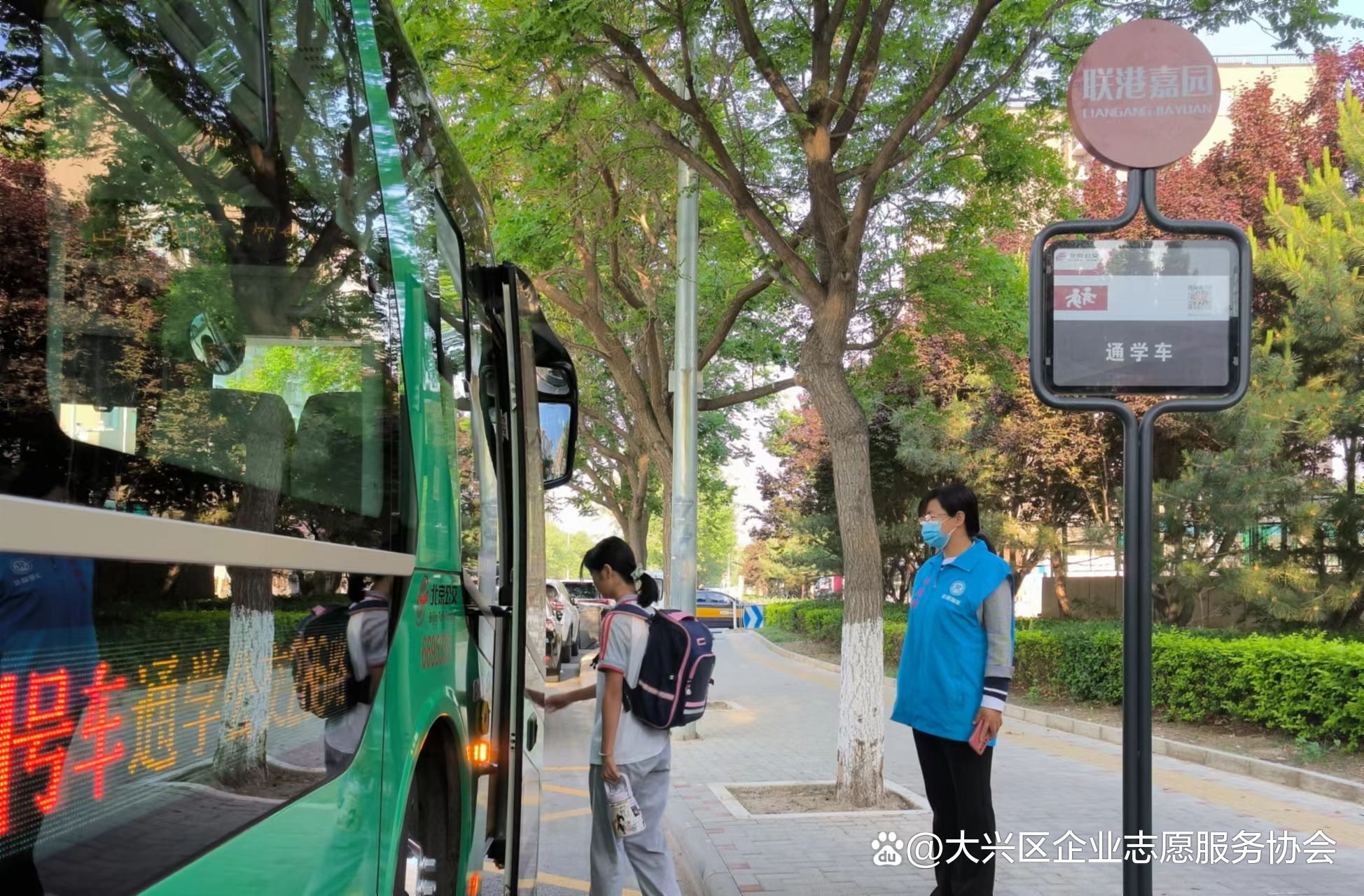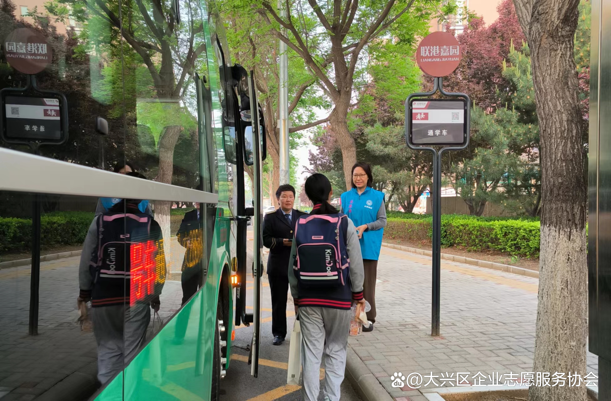 大兴区通学公交林校路街道联港嘉园站自2月25日开通以来,林校路街道高度重视学生上下学乘车安全问题。为响应相关部门的指导意见,林校路街道与大兴区企业志愿服务协会对接,组建志愿者团队,提供通学公交志愿服务,确保学生们的乘车安全。