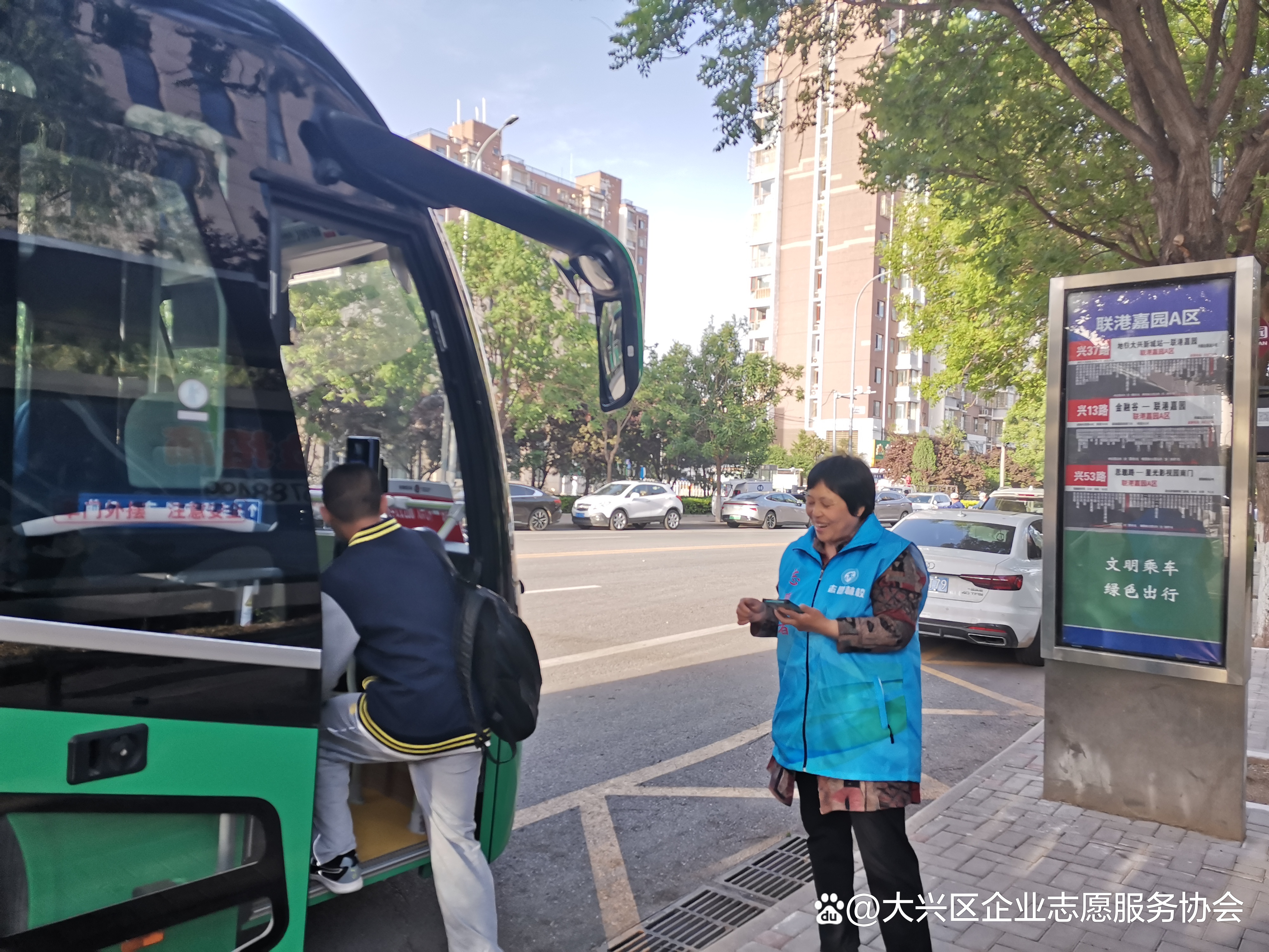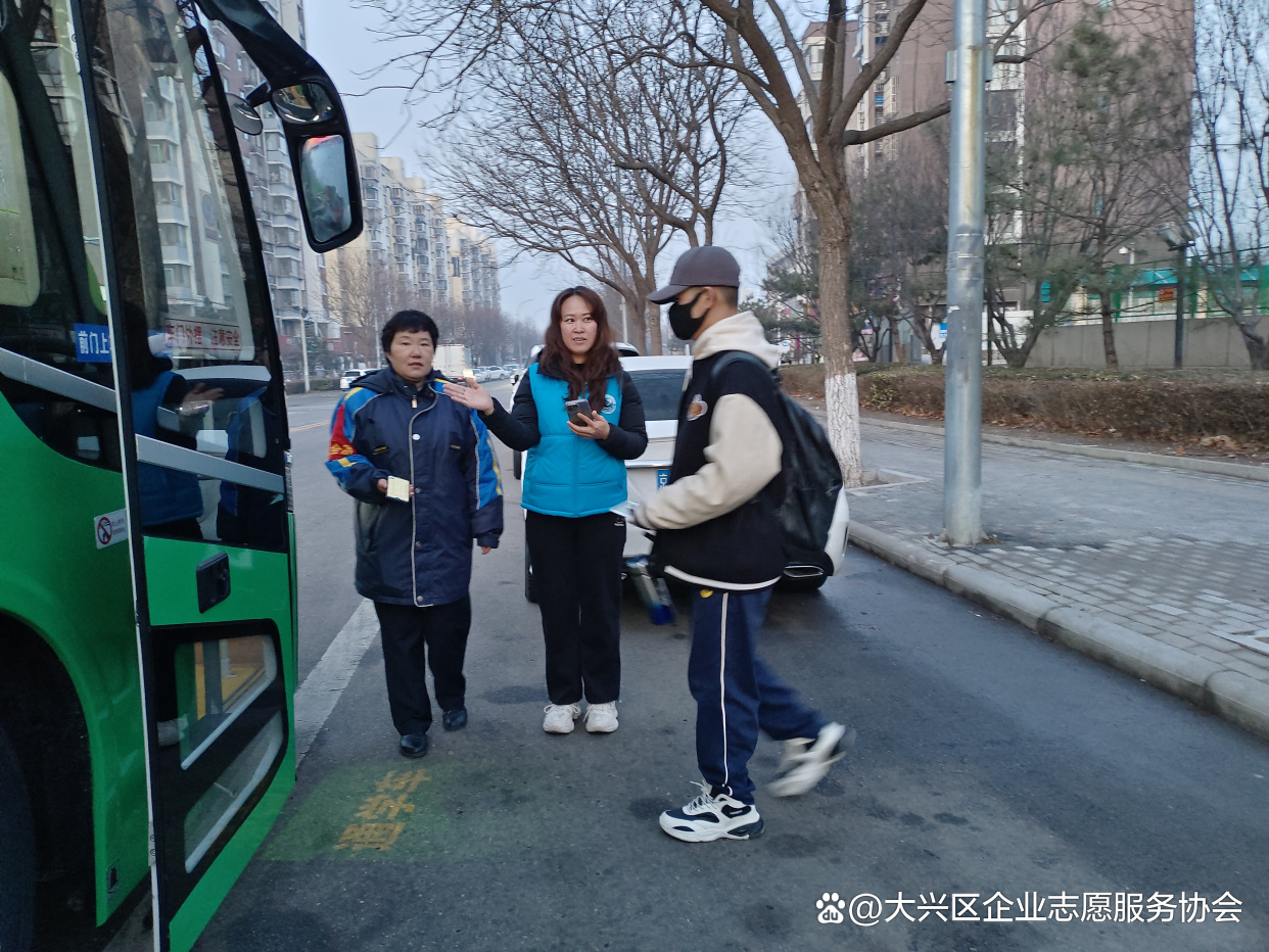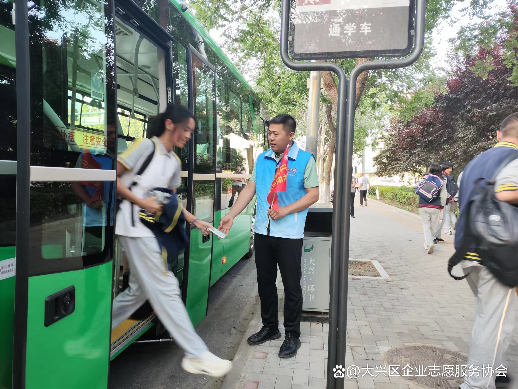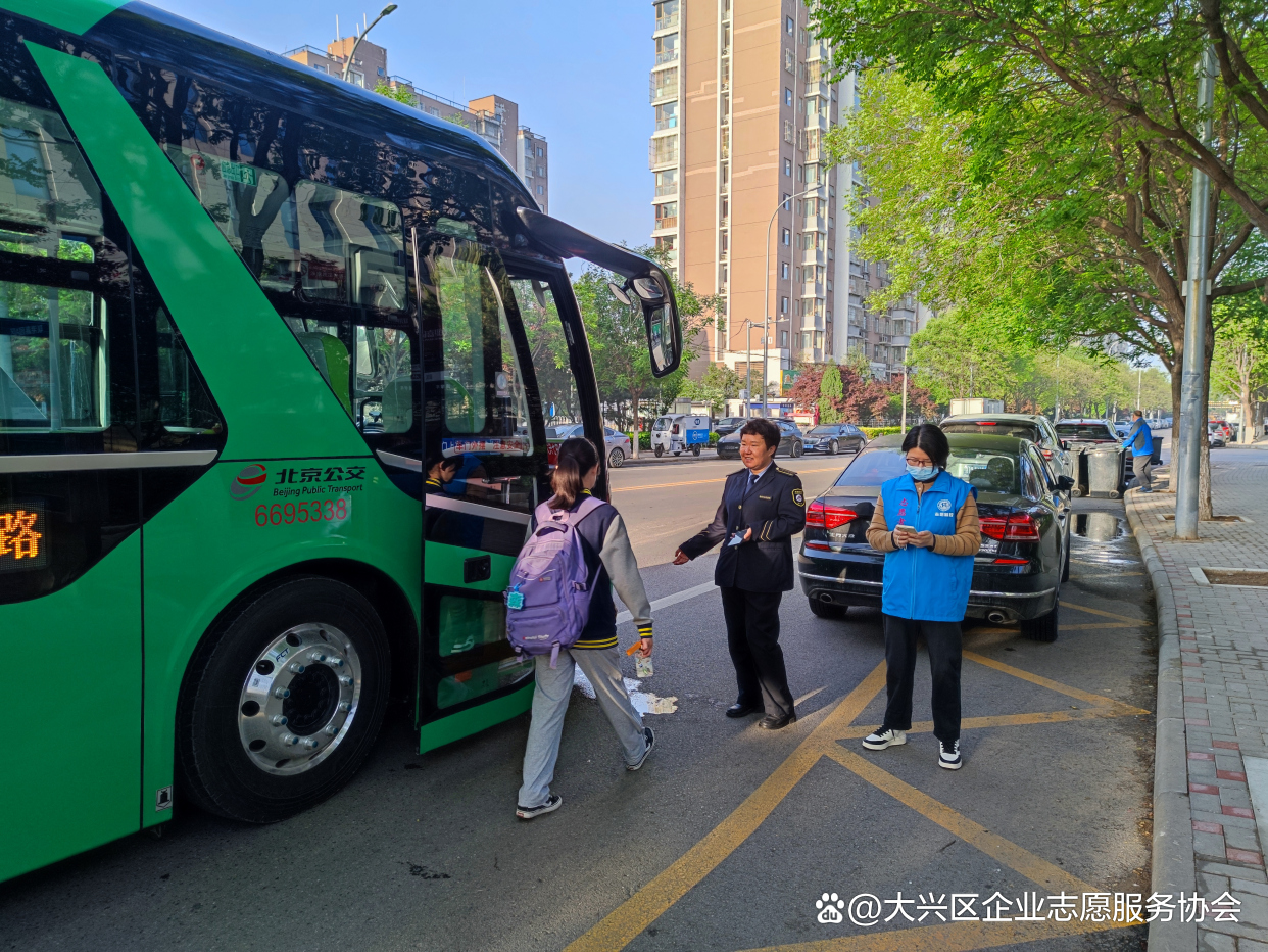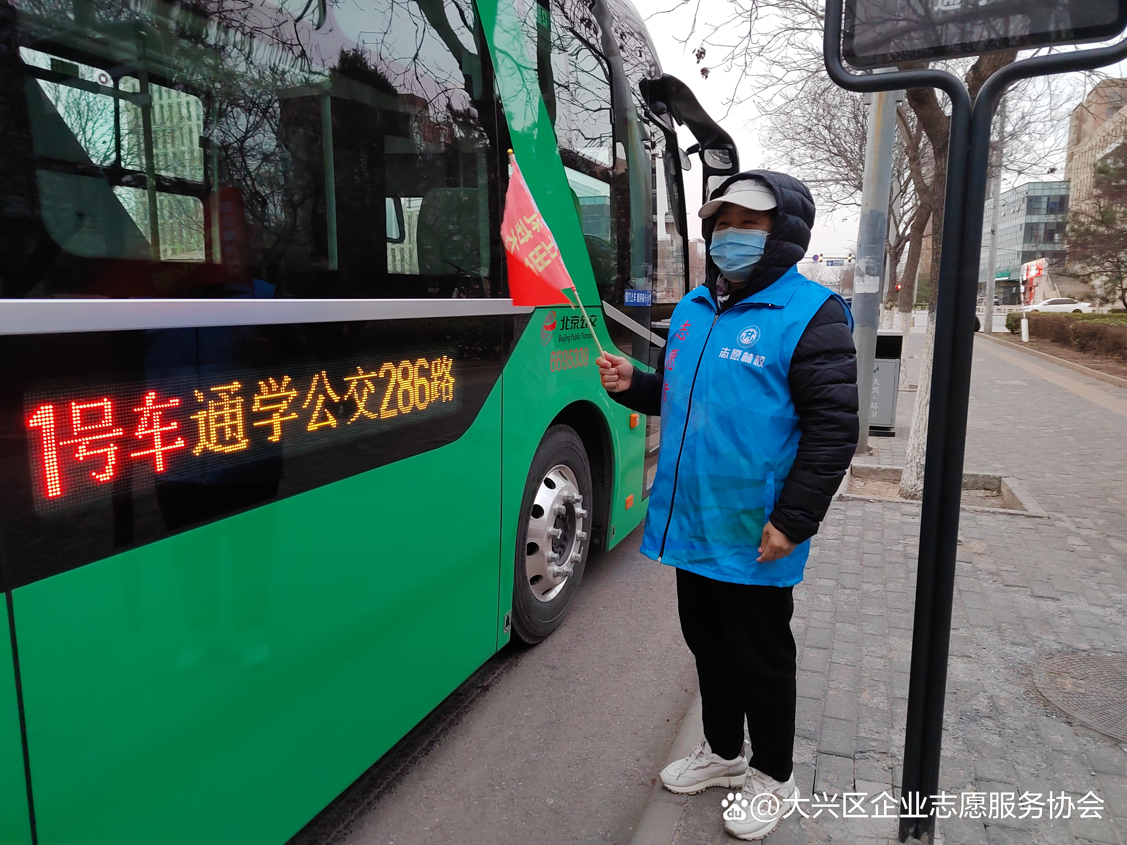 大兴区通学公交林校路街道联港嘉园站自2月25日开通以来,林校路街道高度重视学生上下学乘车安全问题。为响应相关部门的指导意见,林校路街道与大兴区企业志愿服务协会对接,组建志愿者团队,提供通学公交志愿服务,确保学生们的乘车安全。
