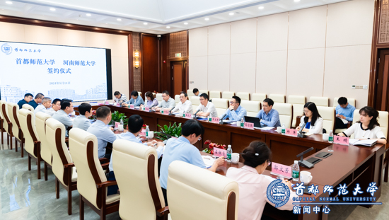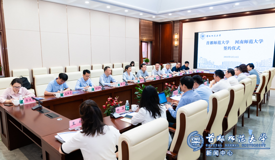 5月14日,“首都师范大学 河南师范大学 合作协议”签署仪式在首都师范大学举行。河南师范大学校长冯淑霞、副校长苗雨,学校校长、中国科学院院士方复全,党委副书记王大广,党委常委、副校长李海梁出席签约仪式。两校相关部门负责人参加仪式,仪式由王大广主持。
