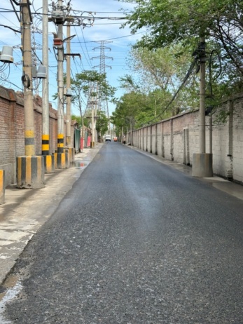 2023年9月,北京城建混凝土有限公司投入100万元对门前道路进行了升级改造,重新修复的道路路面平整,2023年年底还采购了一辆新型湿式清扫车不间断对道路进行清扫,并安排一名专职员工将边边角角清扫车无法清扫的区域进行人员清理,确保道路始终保持在湿润、无尘状态。