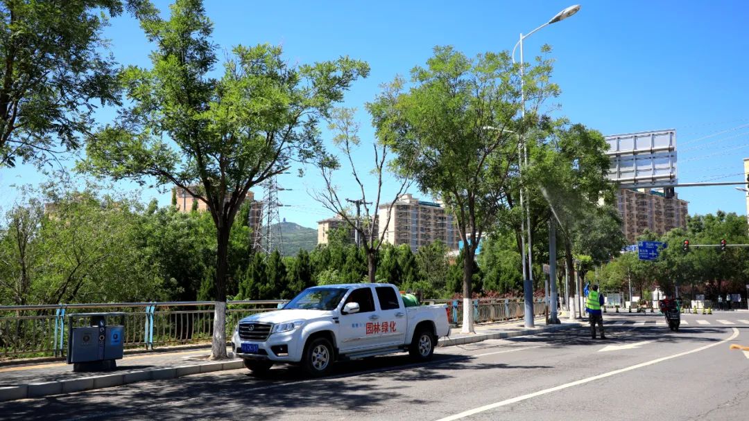 区公园管理中心工作人员岑萌介绍,截至5月15日, 病虫害防治打药已经出动194人次、112车次,治理50个公园、37条道路绿地。针对虫害严重的黑山、滨河等4个公园采取冲洗地面、擦拭座椅等措施, 累计冲洗地面3000多平方米、擦拭座椅293次。