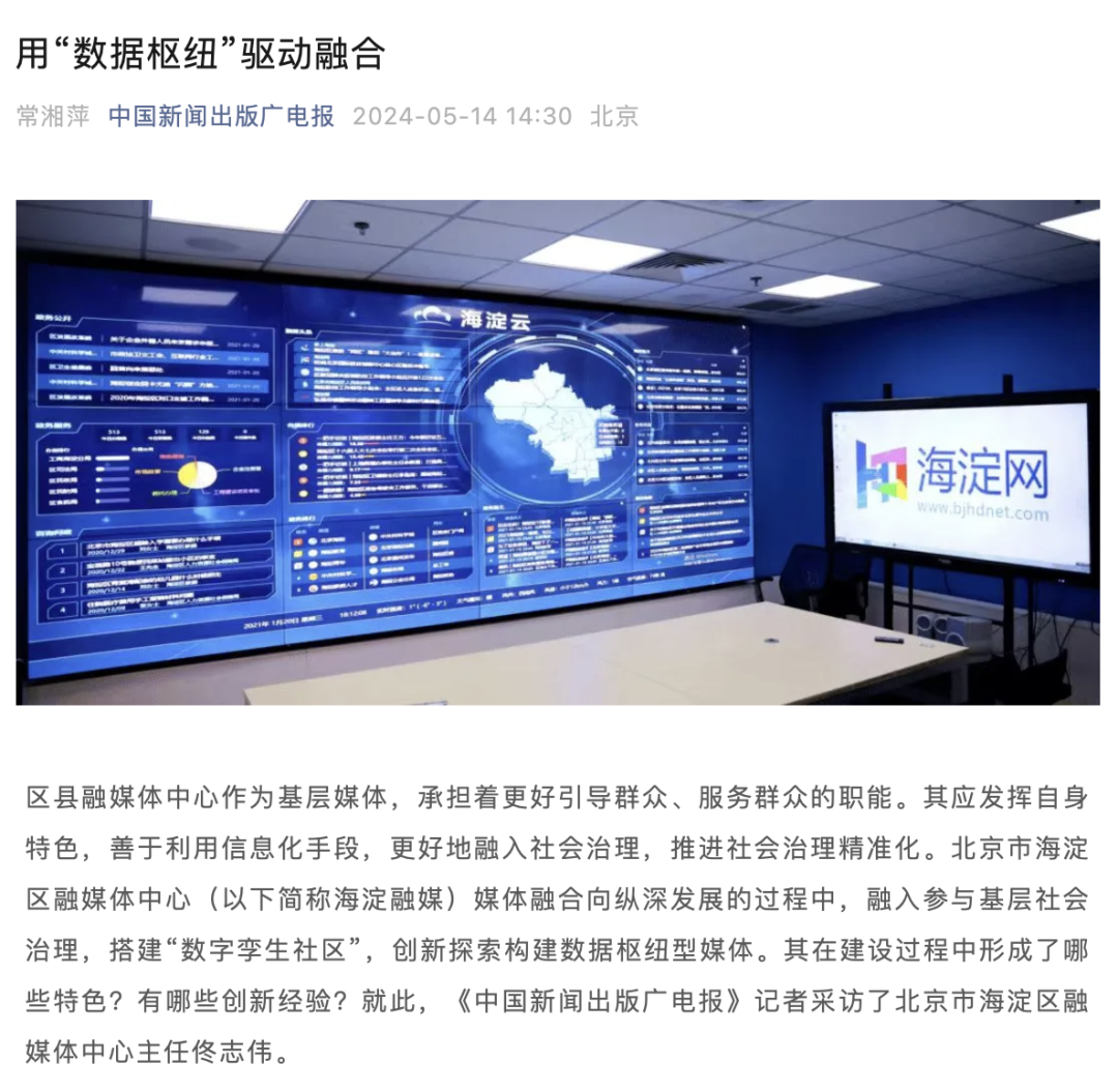 《北京市海淀区融媒体中心用“数据枢纽”驱动融合》