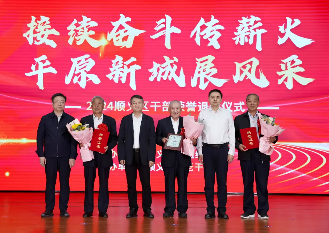 仪式上,与会人员共同观看了《顺义老干部 时代正能量》专题片及文艺表演。与会领导为老党员先锋队代表、“六好”离退休干部党支部、退休干部代表颁发荣誉证书,并为新退休干部代表颁发光荣退休证书。离退休干部代表、新退休干部代表、青年干部代表分别表态发言,表示将牢记初心使命,薪火相传、接力奋斗,携手努力为顺义高质量发展贡献力量。