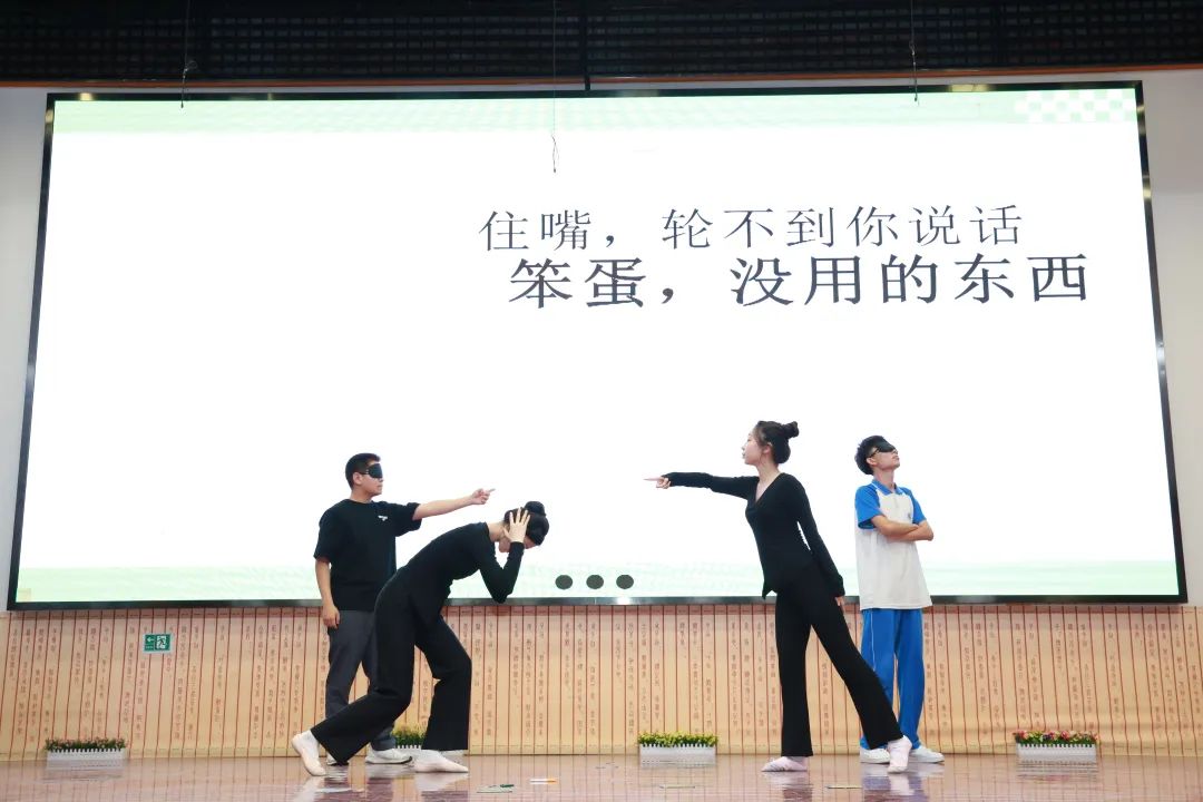 这部剧设计之初,没有这么生动和富有艺术性,在编创的过程中,学生结合自己生活中的典型例子,将剧情和语言生活化,生动化。面对学生舞台表演生疏、走位不够专业的难题时,学校积极对接校外专业资源,聘请请多位戏剧表演、舞蹈、心理剧等领域的专家予以指导,大大提升了表演的观赏性和艺术性。拍摄过程中,,由于学生来自不同年级,碰在一起的时间有限。为了克服这一点,学生利用课间争分夺秒地完成作业,挤出中午和周末的时间进行排练。