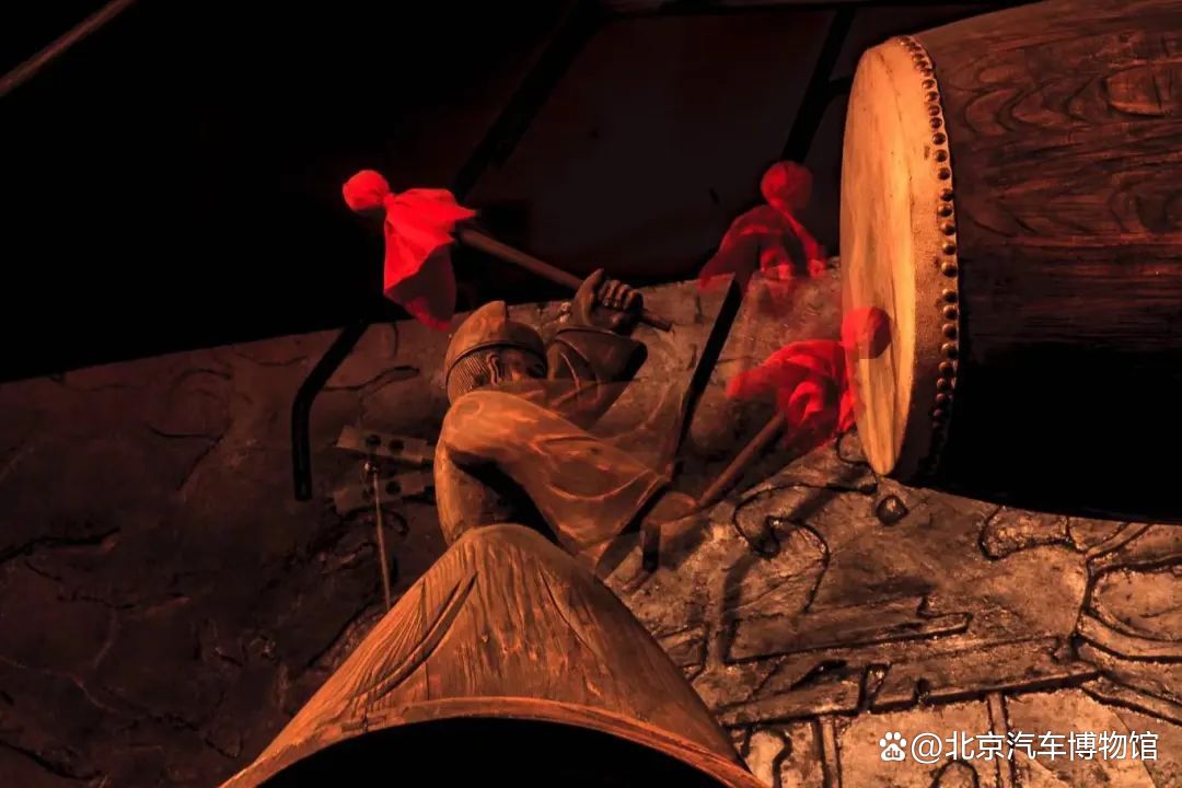 古代的记里鼓车,用巧妙的机械结构让车轮带动鼓槌,实现车行一里就击一次鼓!