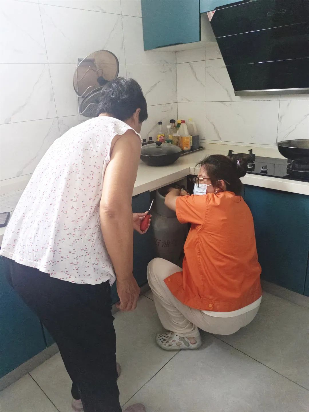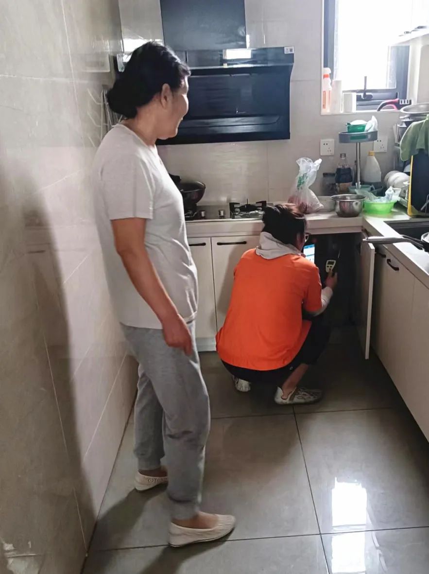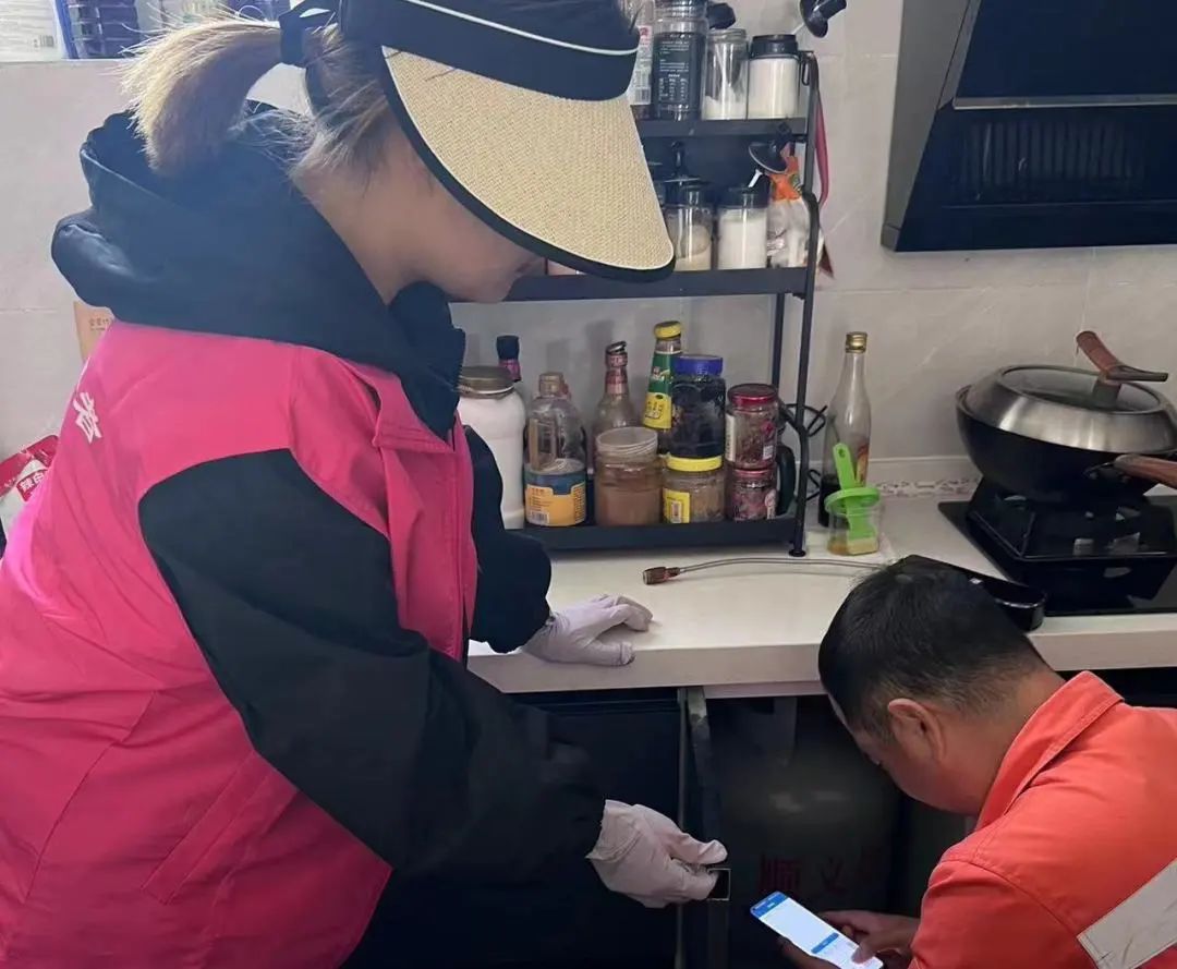 行动中,镇城乡建设办公室(市政工作组)与丽喜花园居委会以及小区物业等部门相互配合,提前通过电话、入户等方式对隐患户进行上门告知,并组织居委会两委人员与社区网格员联合燃气公司专业检查人员根据约定时间到居民家中开展燃气检查与隐患整改工作,及时确保安检、复检工作高效完成。