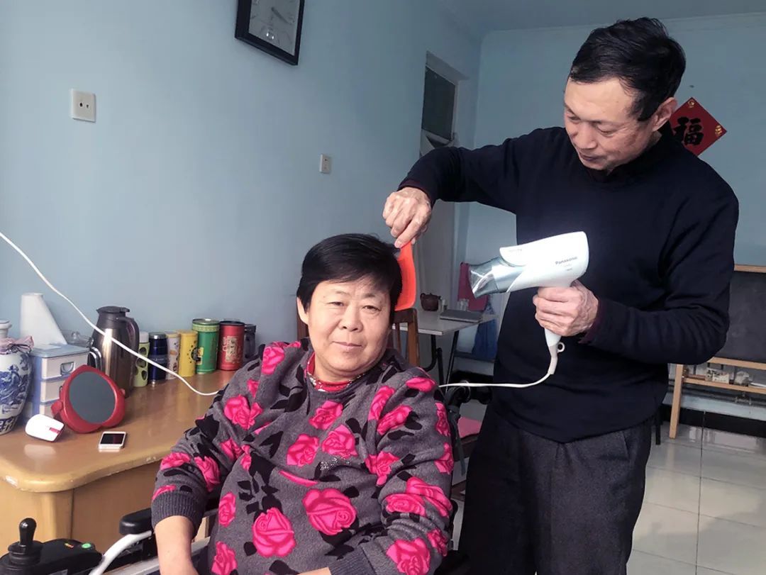 瘫痪十余年的妻子每天都干干净净、整整齐齐的