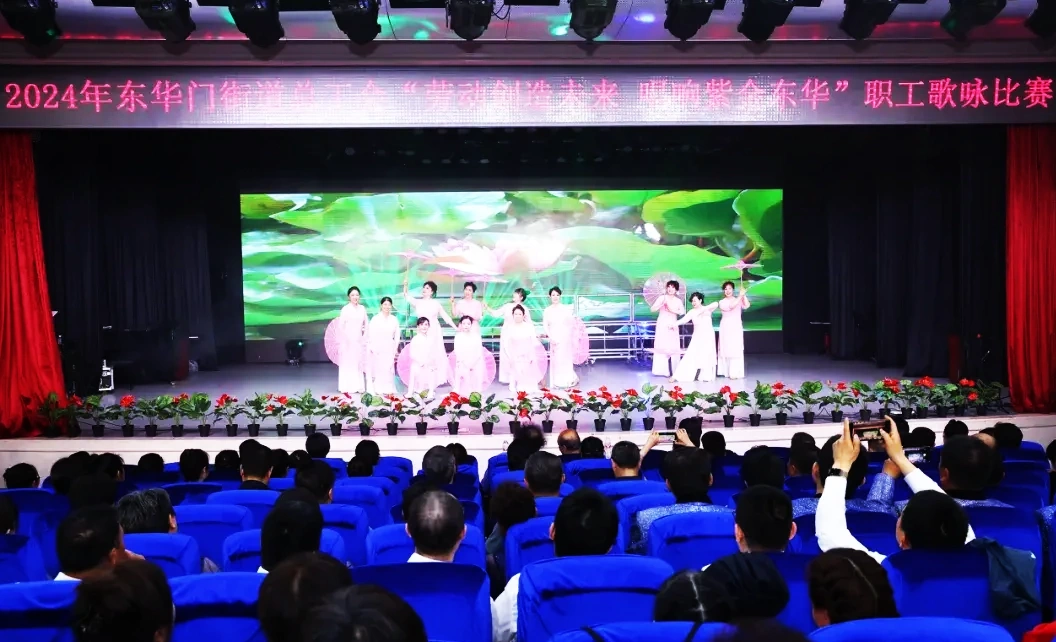 为庆祝中国共产党成立103周年,通过歌声传递对党的热爱和感恩之情,展现新时代职工的精神风貌,弘扬劳模精神、劳动精神、工匠精神,打造“工”字系列职工文化特色,5月16日,东华门街道总工会在六十五中礼堂举办了“劳动创造未来 唱响紫金东华”职工歌咏比赛。