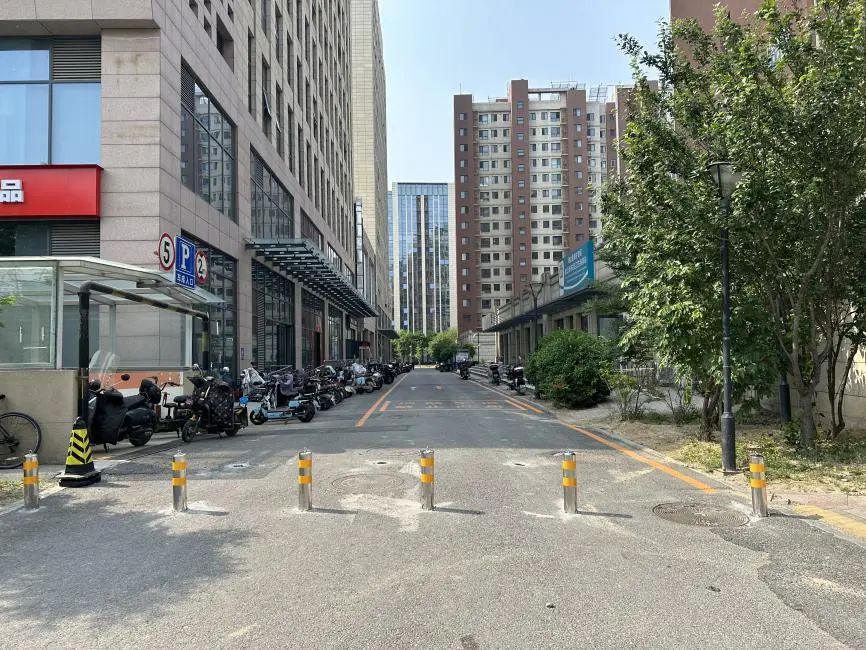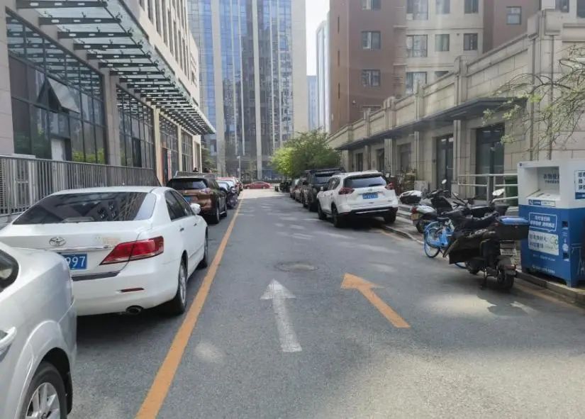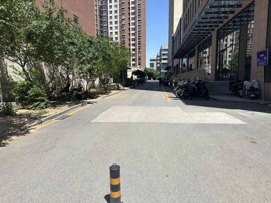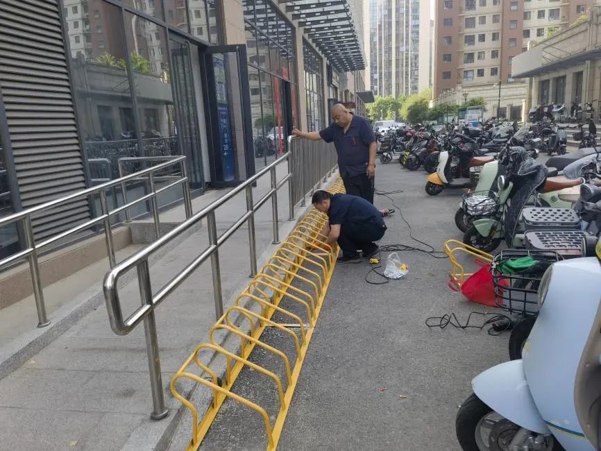 针对居民提出的问题,社区会同物业公司对道路乱停放的车辆进行摸排,共建企业给予安装设施支持。最终采取了在道路进出口位置安装便携式可拆装的隔离桩的方式,并在道路东侧张贴标识,安装了卡位式停车架,安排志愿者和保安加强值守、严格规范电动车、自行车、摩托车停放。经过整治,目前初见成效。