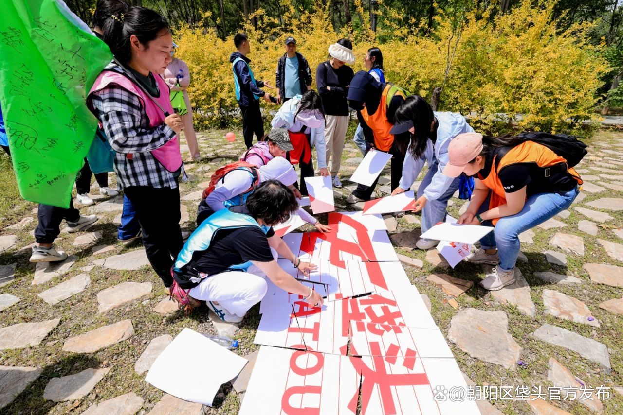 到达终点,社工们齐心协力,以最快的速度拼出了“垡头”字样的展板,展现出社工们相互之间取长补短、互助合作精神,从而提升团队的凝聚力和执行力,在今后实践中转化为履职尽责的强大动力。