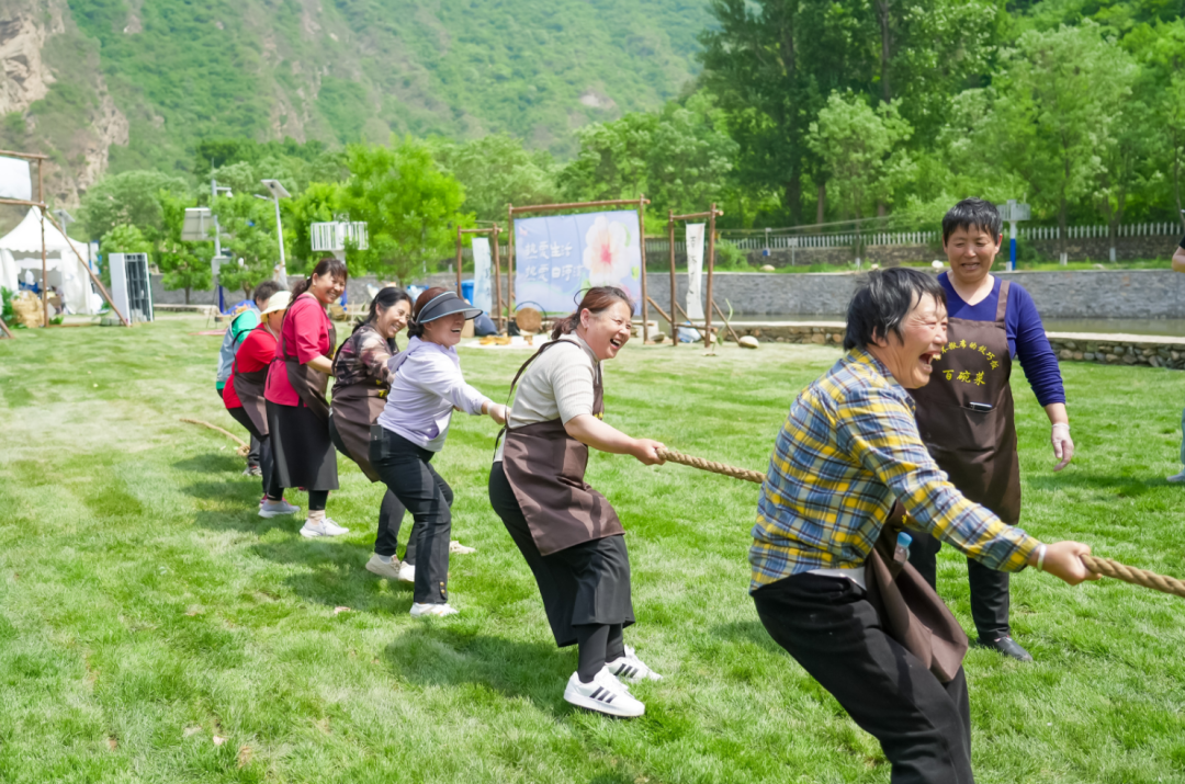 除此之外,现场还举办了紧张激烈的拔河比赛。随着裁判的一声哨响,比赛双方的队员们扎稳马步、降低重心、身体后倾,拉紧绳子齐力奋战。更有趣味的拔河,将比赛气氛推向高潮。