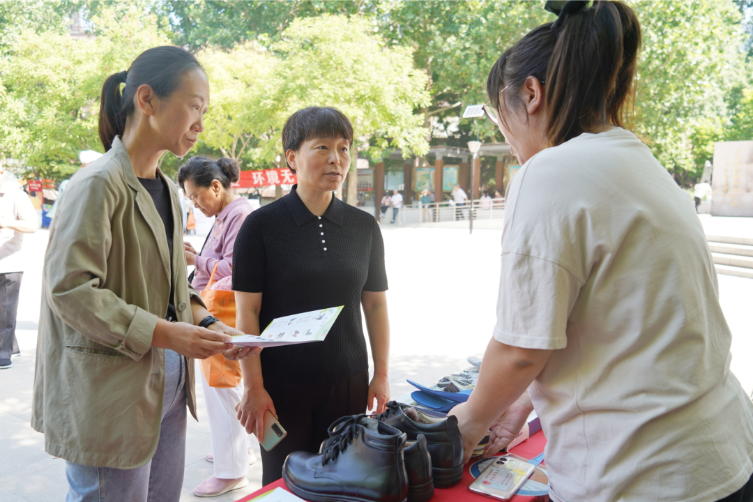 街道民生保障办公室、综合办公室、朝阳区卫生监督所大屯站等工作人员通过设立咨询台、发放宣传单、悬挂横幅等形式,向现场群众普及扶残助残、优抚政策、社保、爱国卫生、防灾减灾等惠民政策及知识,为居民答疑解惑,将助残融入人心、惠残植根基层、扶残推广于民,把惠民政策送到百姓“家门口”。