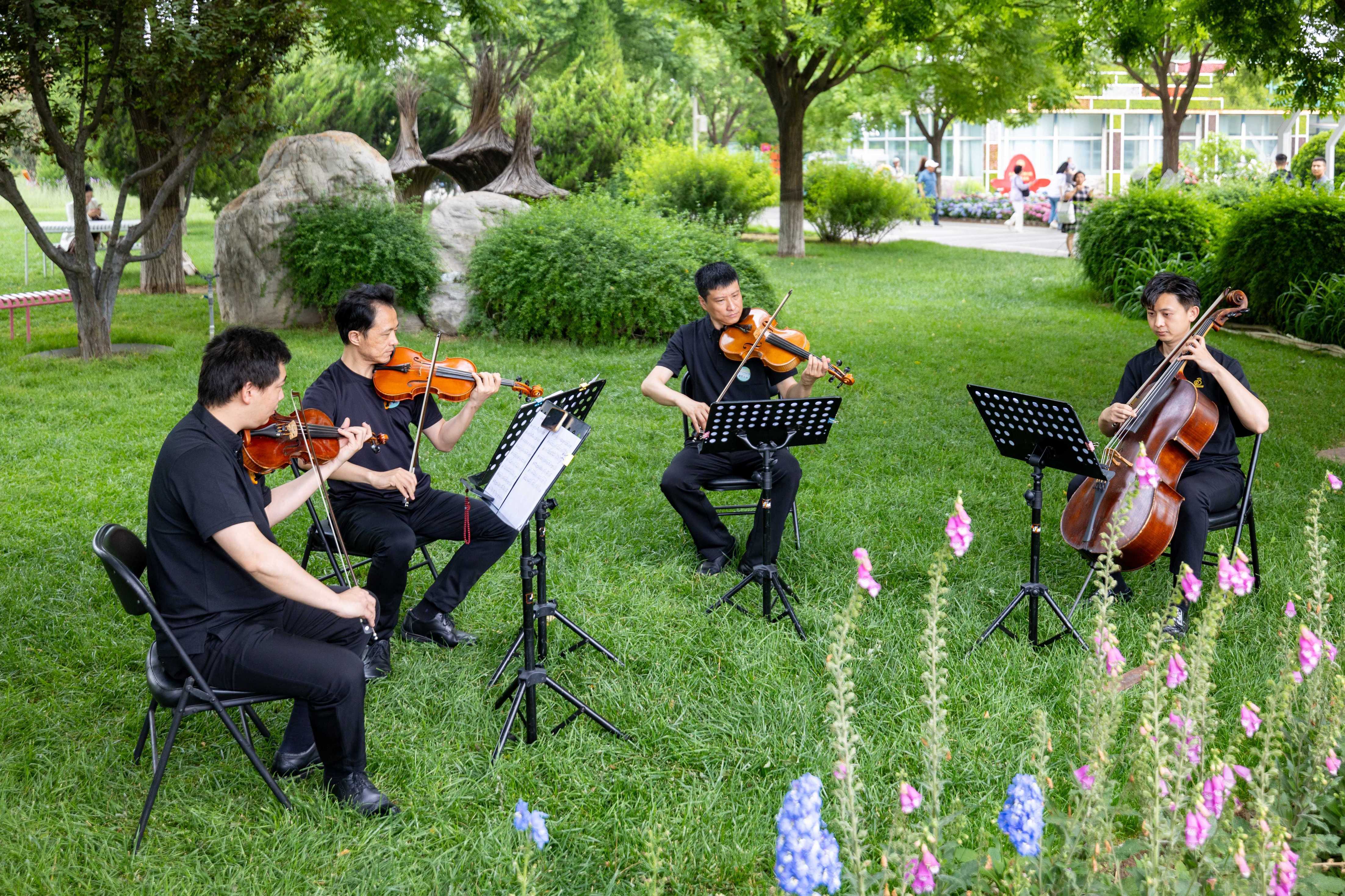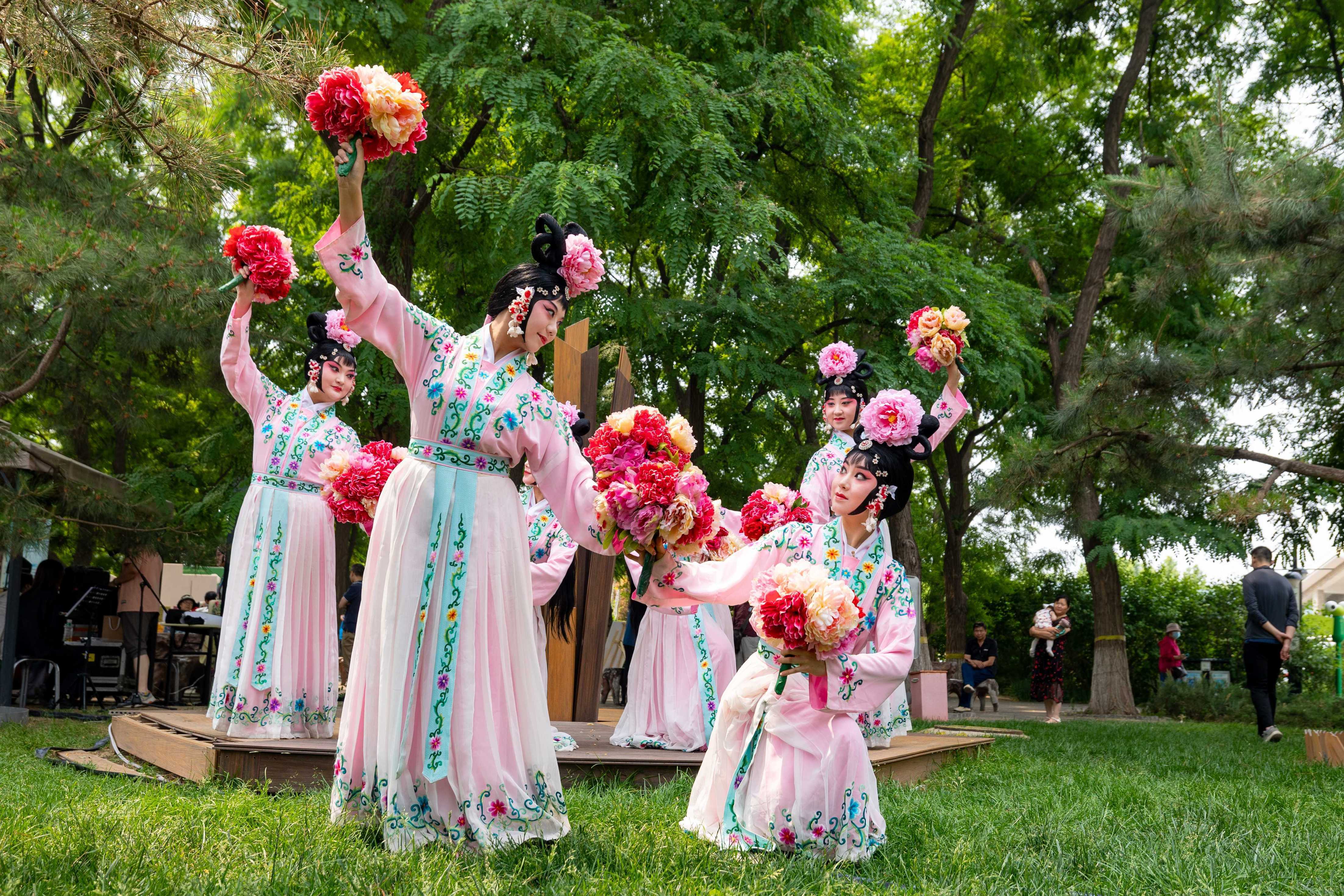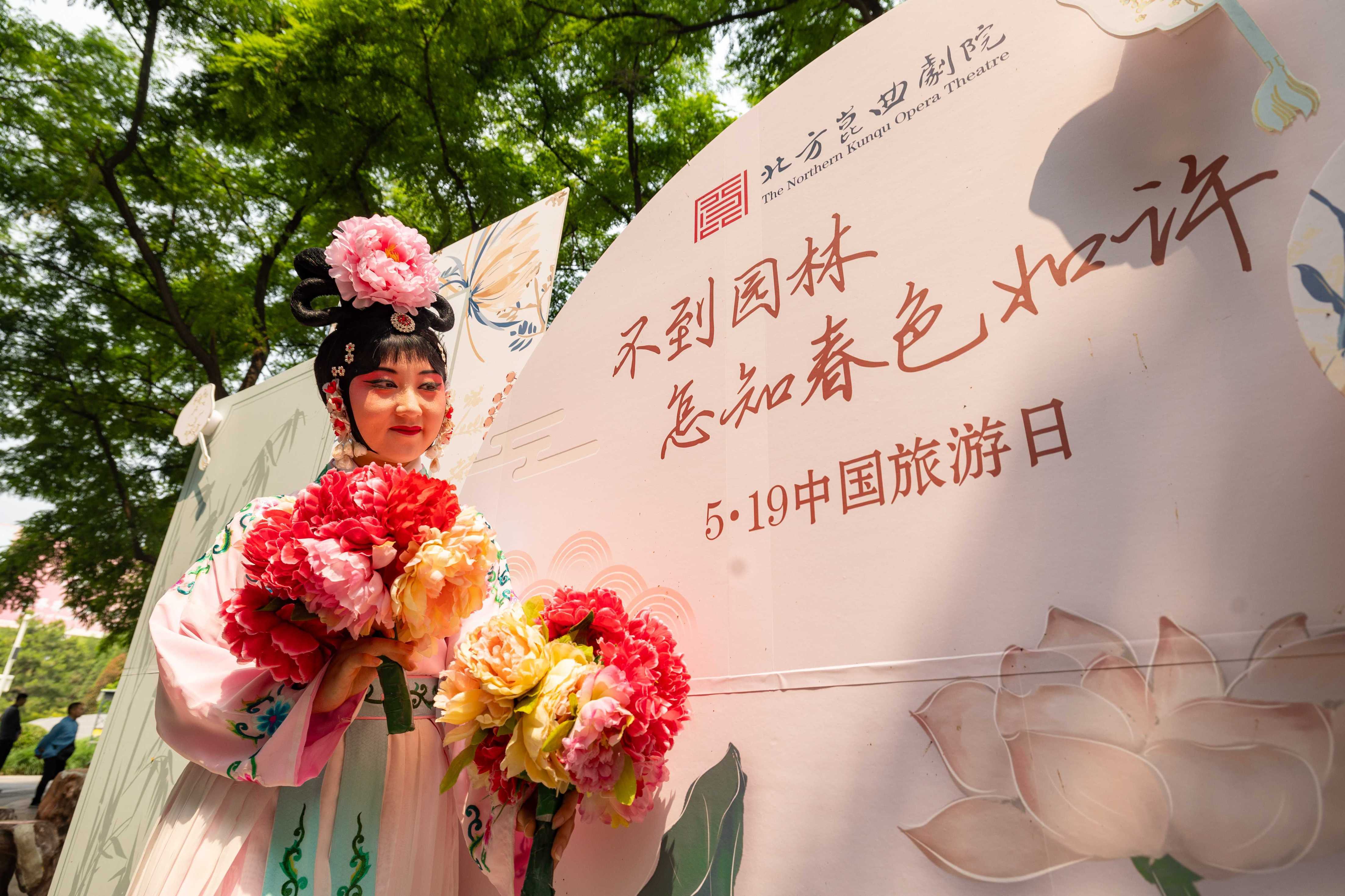 在世界花卉大观园槐树林,北方昆曲剧院的演员们身着华美的戏服,脸上绘着精致的妆容,表演着昆曲《游园》选段。北方昆曲剧院副院长邵天帅表示,这次“5·19中国旅游日”活动,他们还推出了“买一赠一”惠民活动,以便让更多人了解昆曲艺术的深厚文化底蕴和独特艺术魅力。