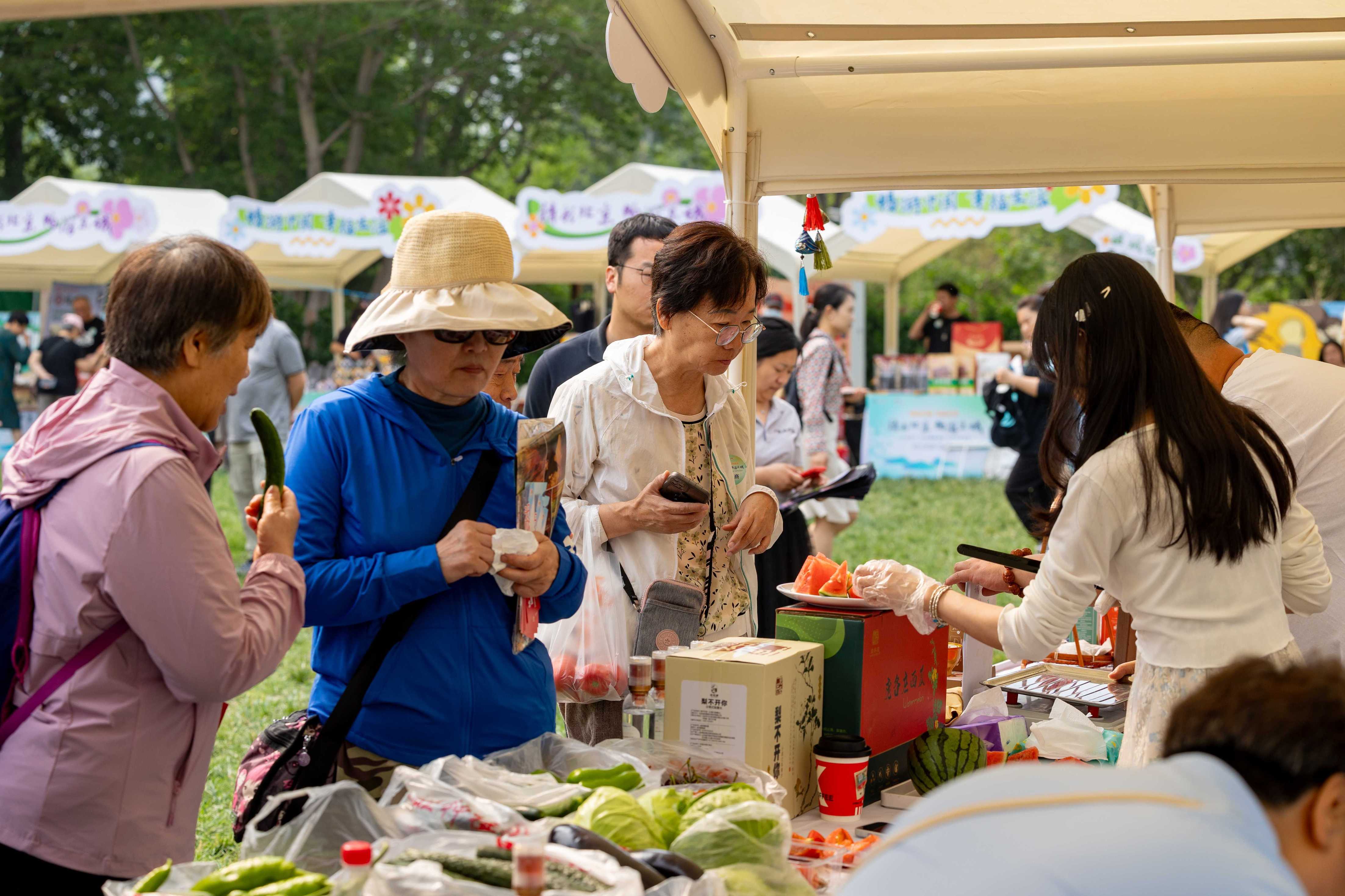 “他们这西红柿和黄瓜看着还挺不错,价格也不贵。”活动现场,周阿姨向记者展示着自己在北京百旺农业种植园摊位上购买的农产品。