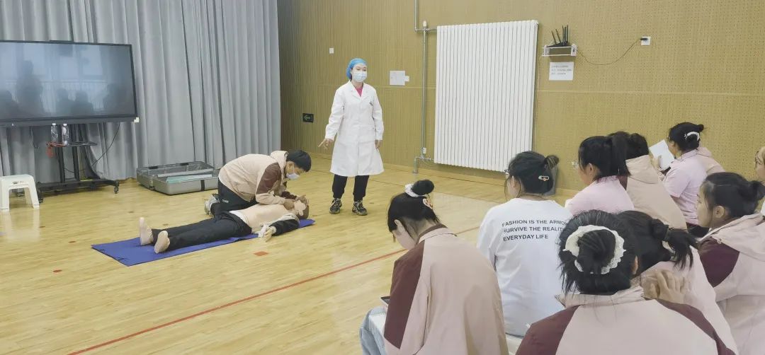 活动现场,中心公卫医生蔡嘉以生动的语言和专业的技能,为师生们详细讲解了心肺复苏的重要性及操作流程。她通过使用模拟人,演示了如何判断患者意识、呼吸、大动脉搏动,以及呼救的注意事项和技巧。同时,蔡嘉还强调了正确的胸外按压部位和力度、人工呼吸的注意事项等,让现场的师生深刻理解了心肺复苏的关键步骤。