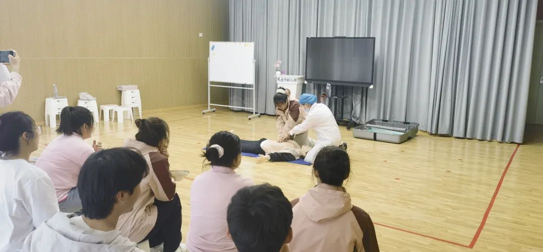 此外,蔡嘉还普及了在配备有除颤仪的火车站、机场等大型公共场所,遇到路人突然倒下时,如何快速抓住“救命”的黄金4分钟,最大限度地挽救生命、给他人创造更多生存的机会。这一实用信息的普及,进一步提升了师生们对于公共场所急救重要性的认识。