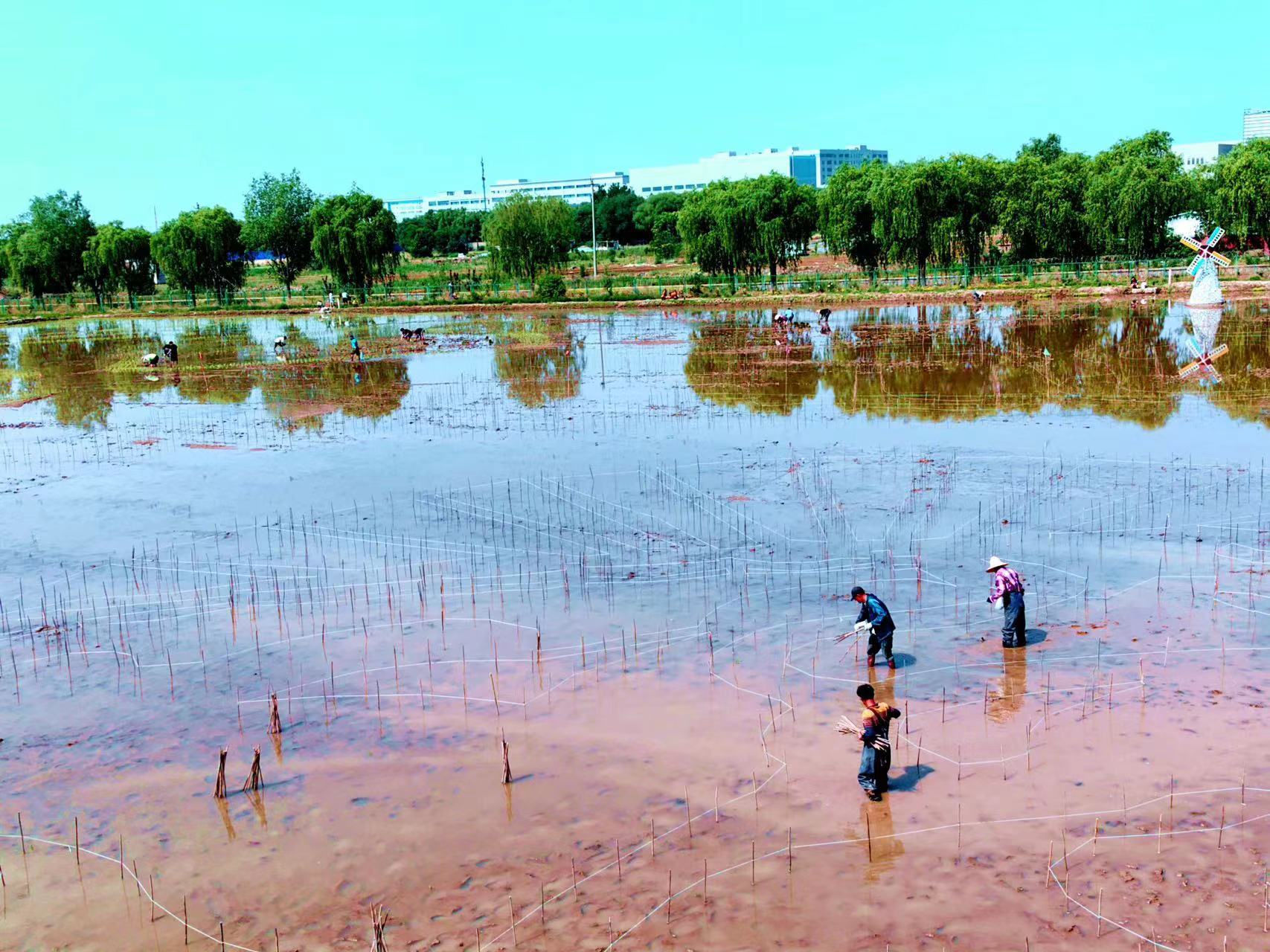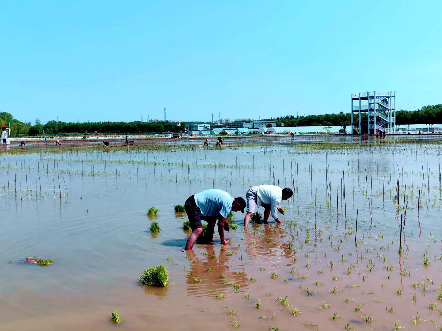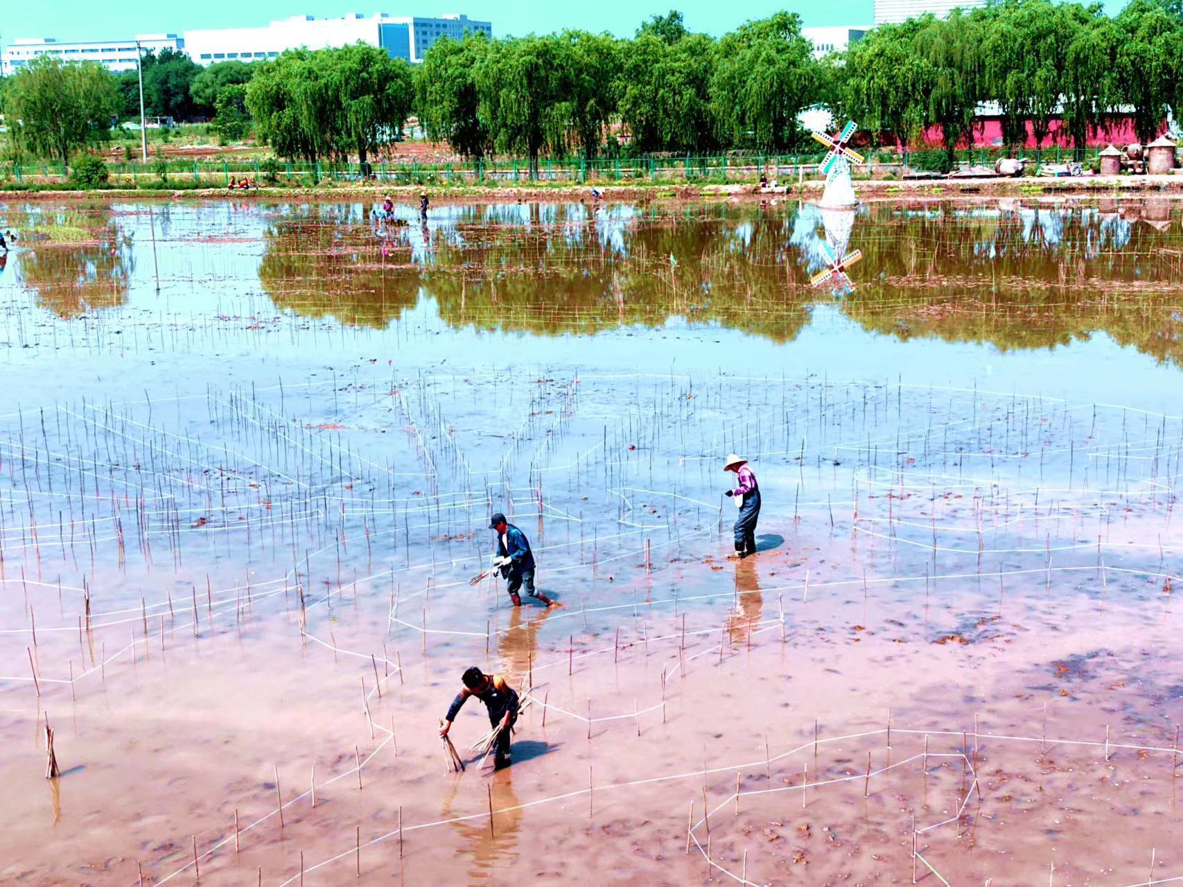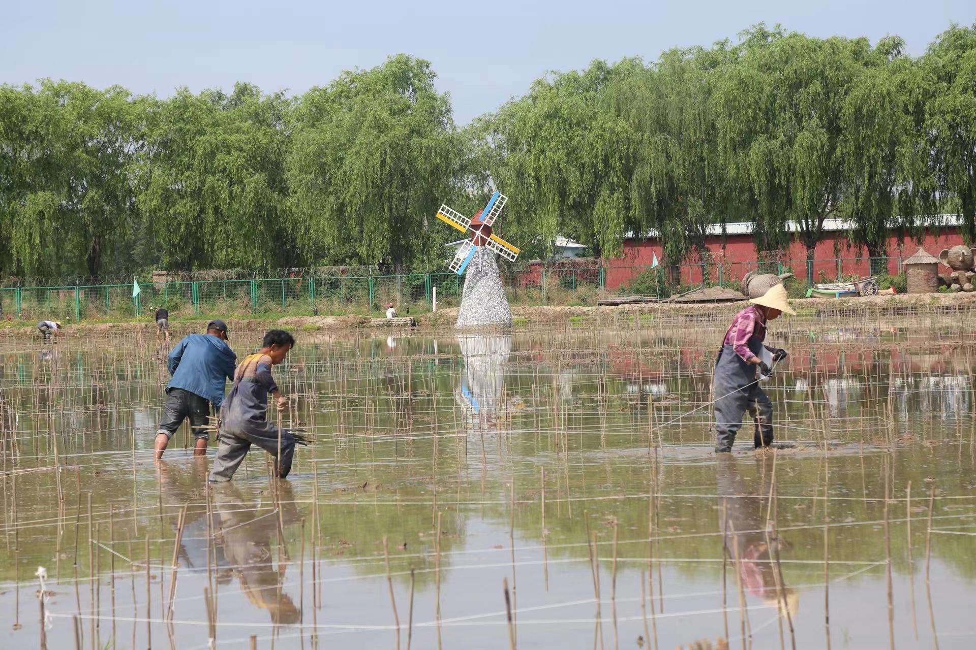 阳光下的稻田里,村民们头戴草帽弯着腰,将一棵棵秧苗快速插入水田里,很快一排排绿油油的秧苗便在田间遍布开来……5月20日,小满节气,在丰台区王佐镇佃起村金岗盛兴度假庄园,“匠心耕耘 必有回响”2024佃起第四届插秧节举办。