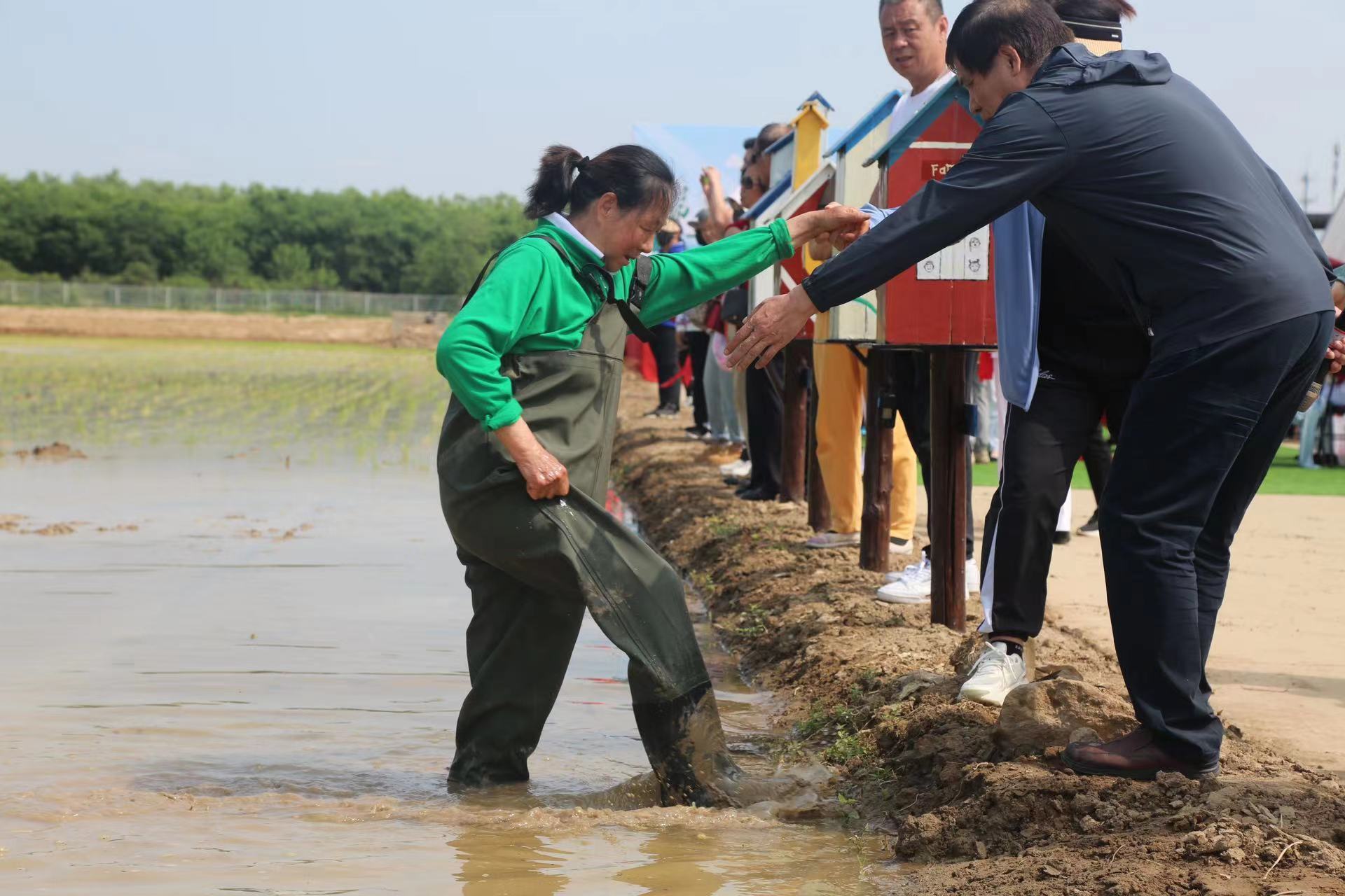 插秧节的重头戏自然是插秧比赛,比赛由佃起村村委会代表队、小区物业代表队、腰鼓队等九个单位组成,参赛选手们在竞赛区域内一字排开,大家赤脚撸袖、埋头弯腰,有的忙着搬运秧苗,有的忙着分秧、插秧。现场锣鼓声、欢笑声、加油声此起彼伏,大家在水田近距离感受插秧过程,欣赏田园风光,不一会儿,一排排嫩绿的秧苗就在水田中整齐地排列开来。